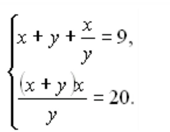 Теперь для х+у=5, х/у=4