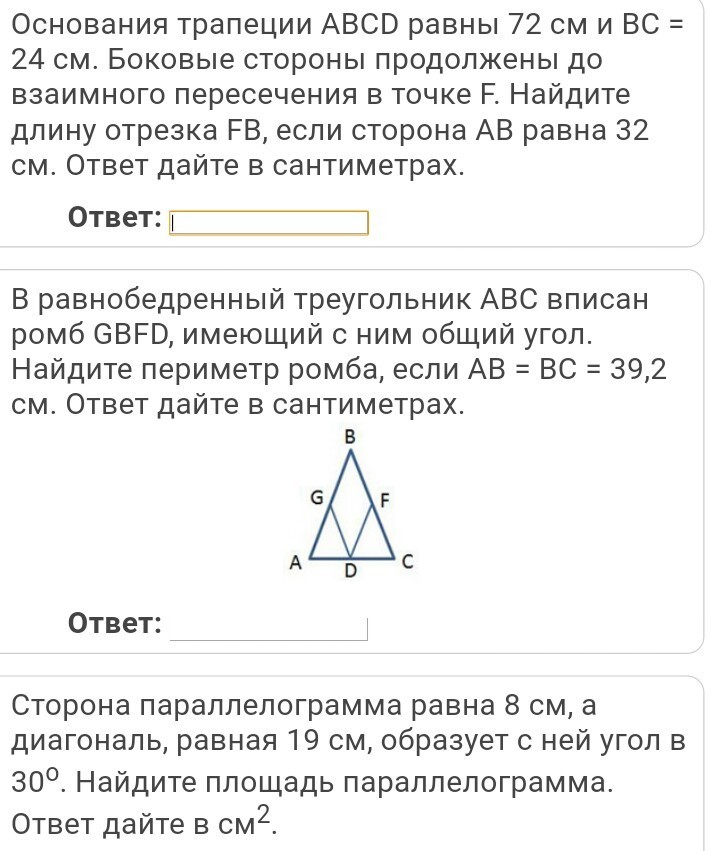 2) AGD - равнобедренный треугольник, AG = GD = GB = (1/2)AB.