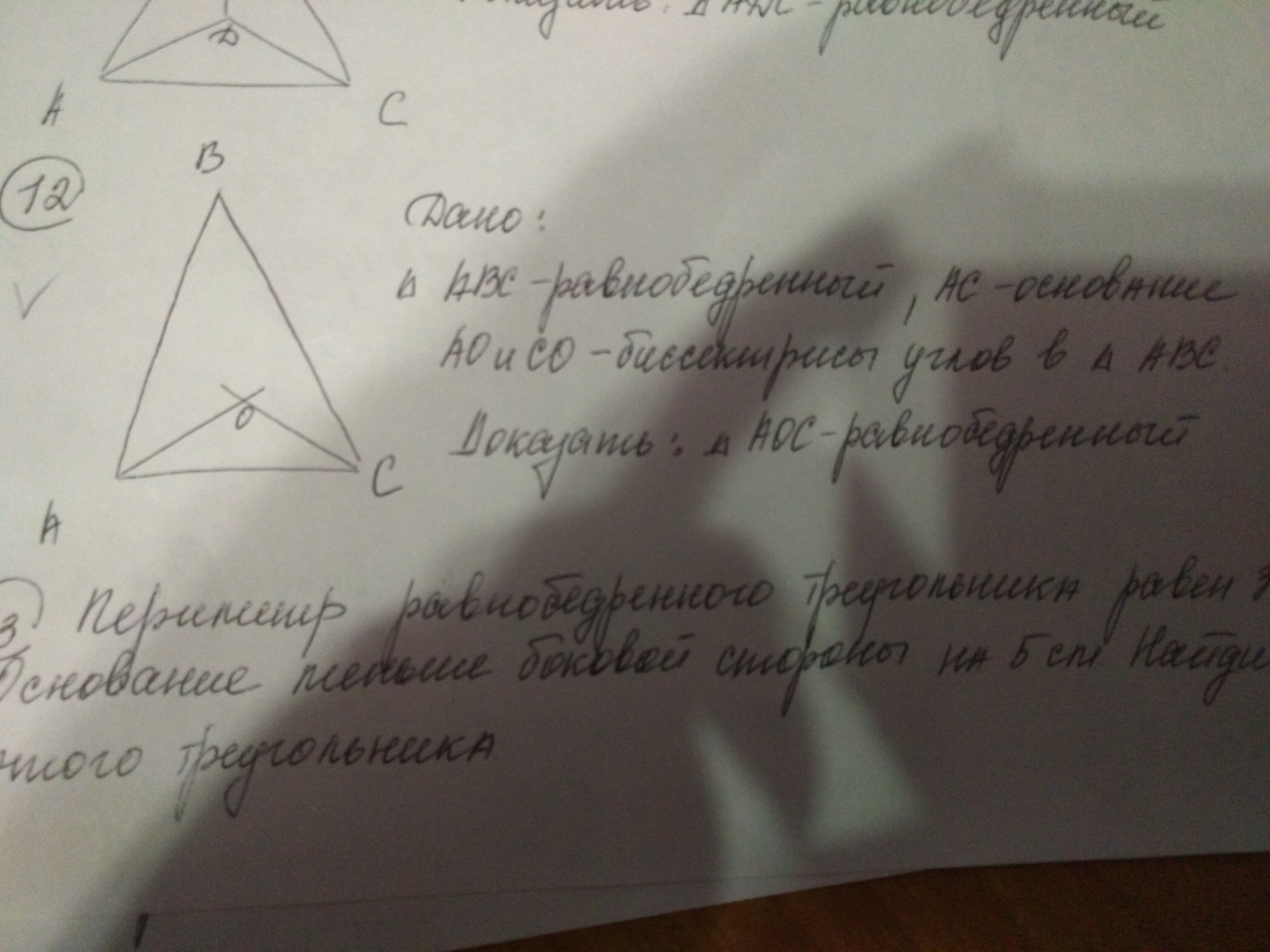 т.к. треугольник равнобедренный, то углы при основании равны => и углы, поделенные бис-сами тоже равны, получается и треугольник АОС - рб