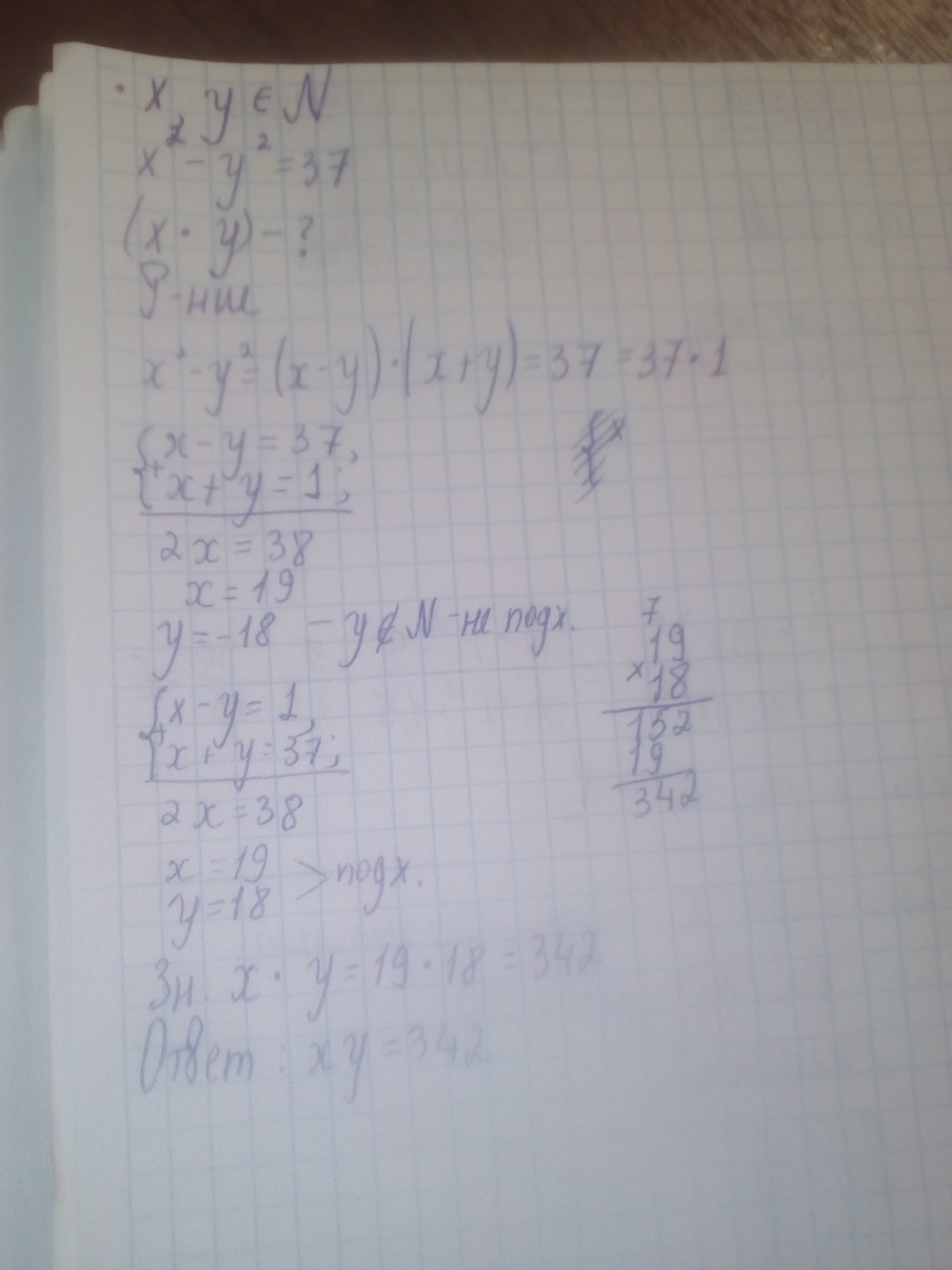 (x - y = 37, x + y = 1 невозможно при натуральных значениях х и у)