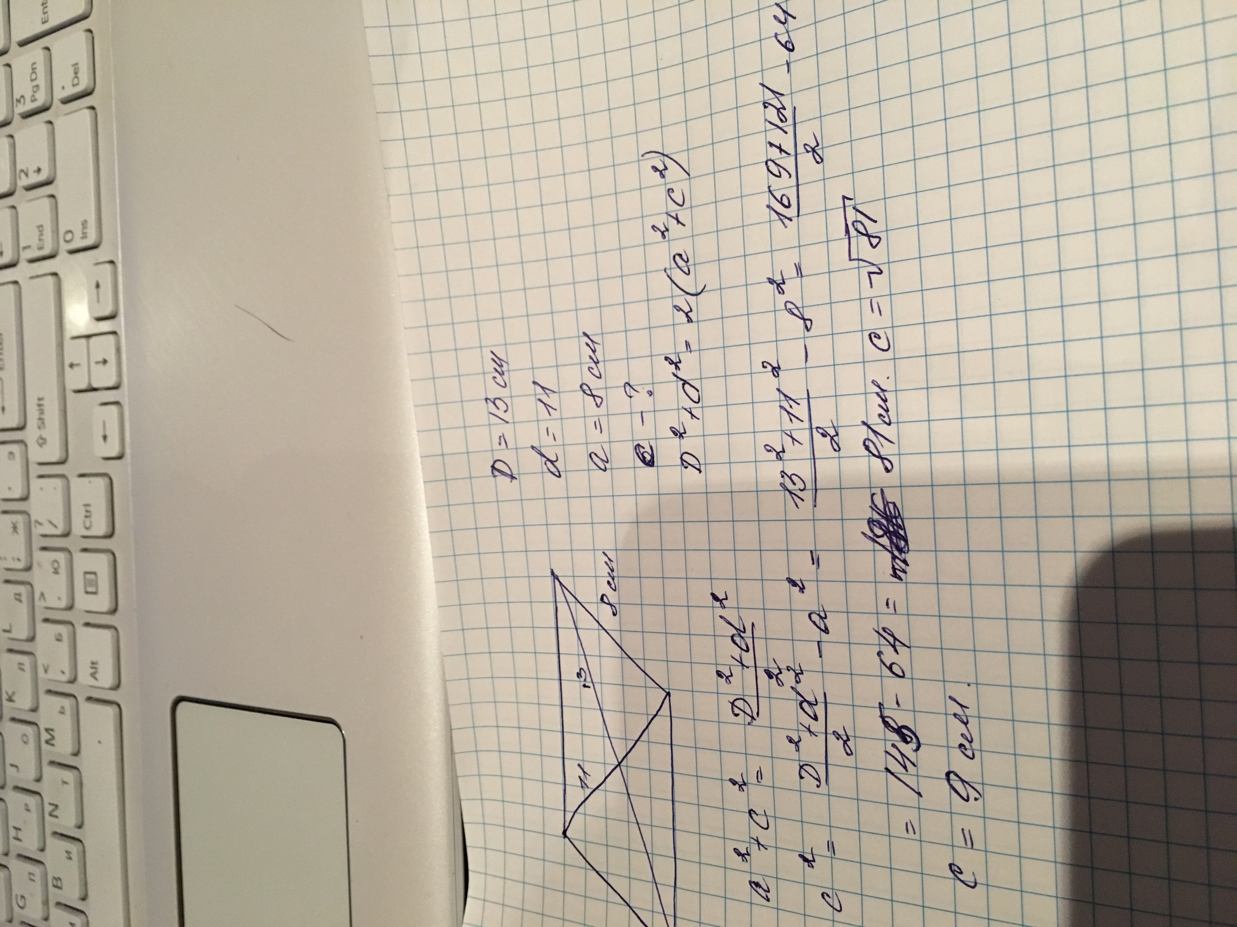 Диагонали параллелограмма 13 см и 11 см. Найдите большую сторону параллелограмма, если одна из них равняется 8 см
