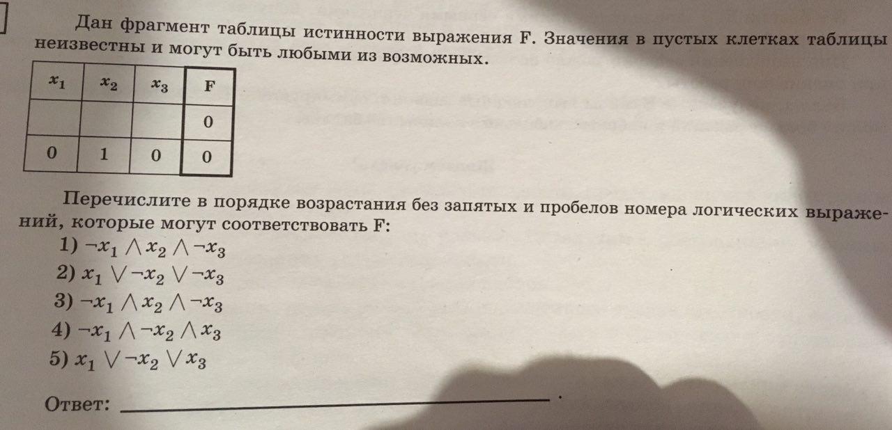 Перечислите в порядке возрастания без запятых и пробелов номера логических выражений, которые могут соответствовать F.