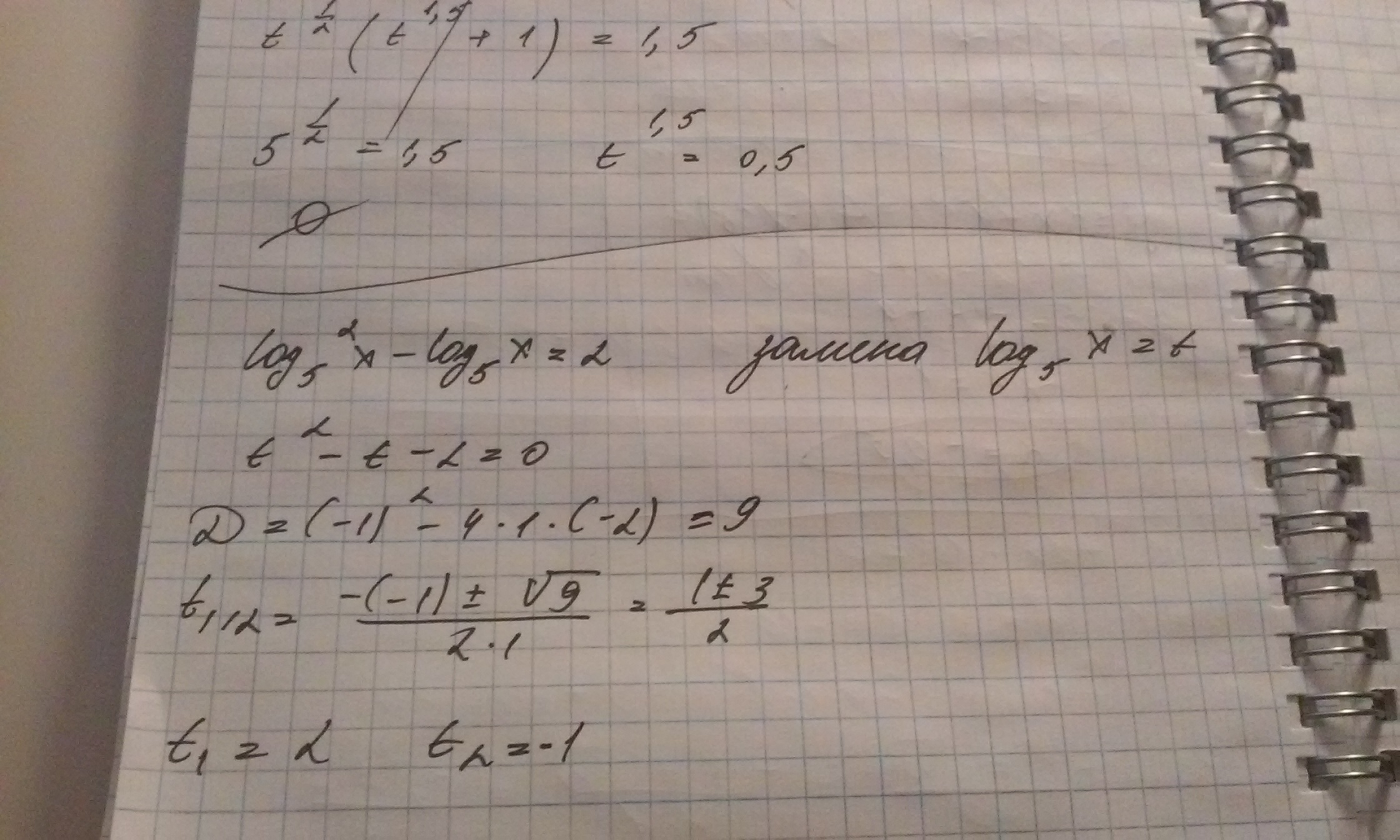 t₂=(1-3)/2=-1 ㏒₅х=-1 х=1/5