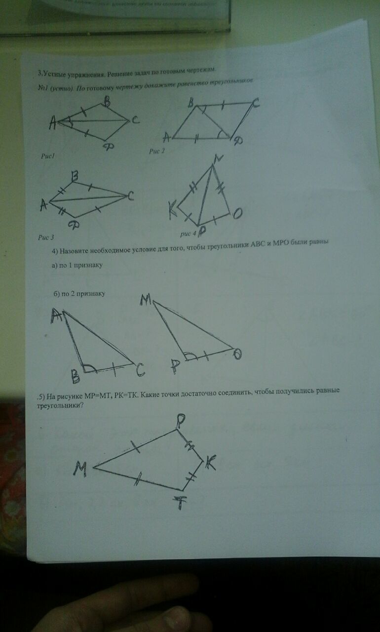 4.1. 1) Чтобы треугольники были равны по I признаку, необходимо, чтобы BC = PO