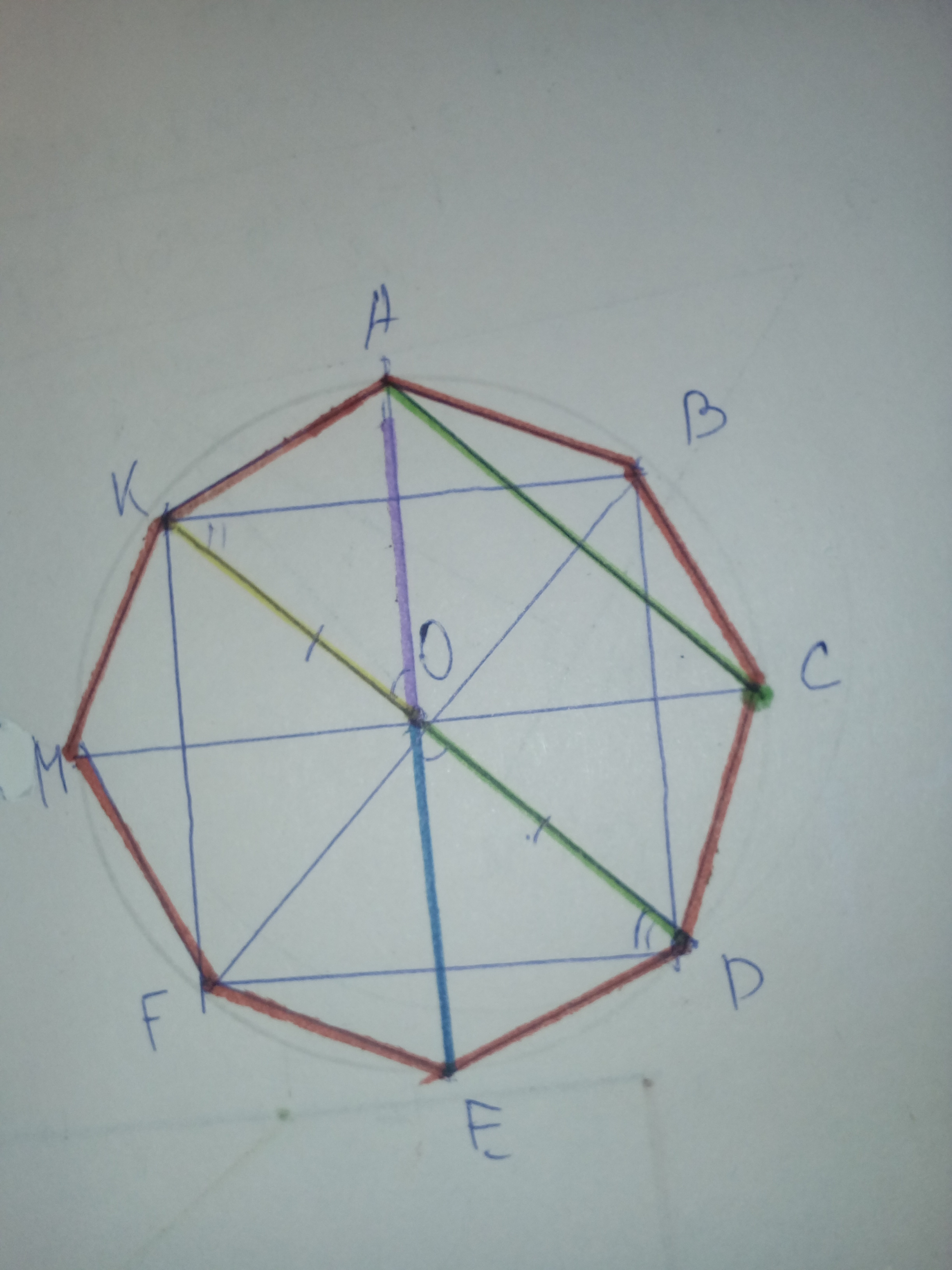 дан правильный восьмиугольник ABCDEFMK
