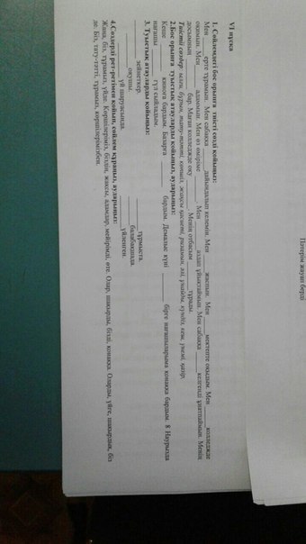 #4)Біз жаңа үйде тұрамыз(мы живем в новом доме).Біздің көршілеріміз өте мейірімді,жақсы адамдар(наши соседи очень добрые,хорошие люди).Олар бізді қонаққа шақырды(Они пригласили нас в гости).Біз де оларды үйге шақырдық(мы тоже пригласили их домой).Біз көршілерімізбен тату-тәтті тұрамыз(мы живем дружно с соседями)