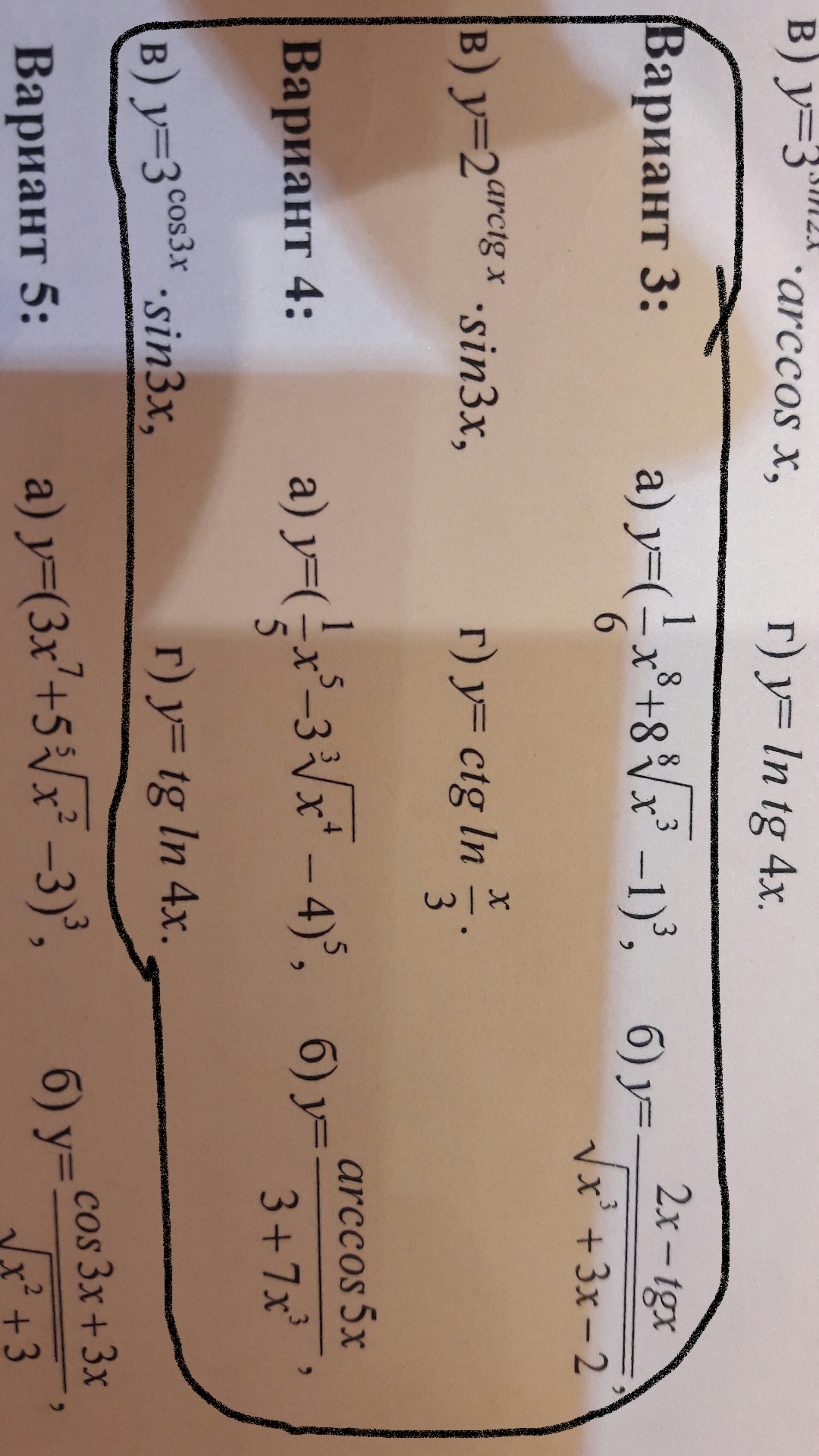 б) y = arcCos5x/(3 + 7x³)