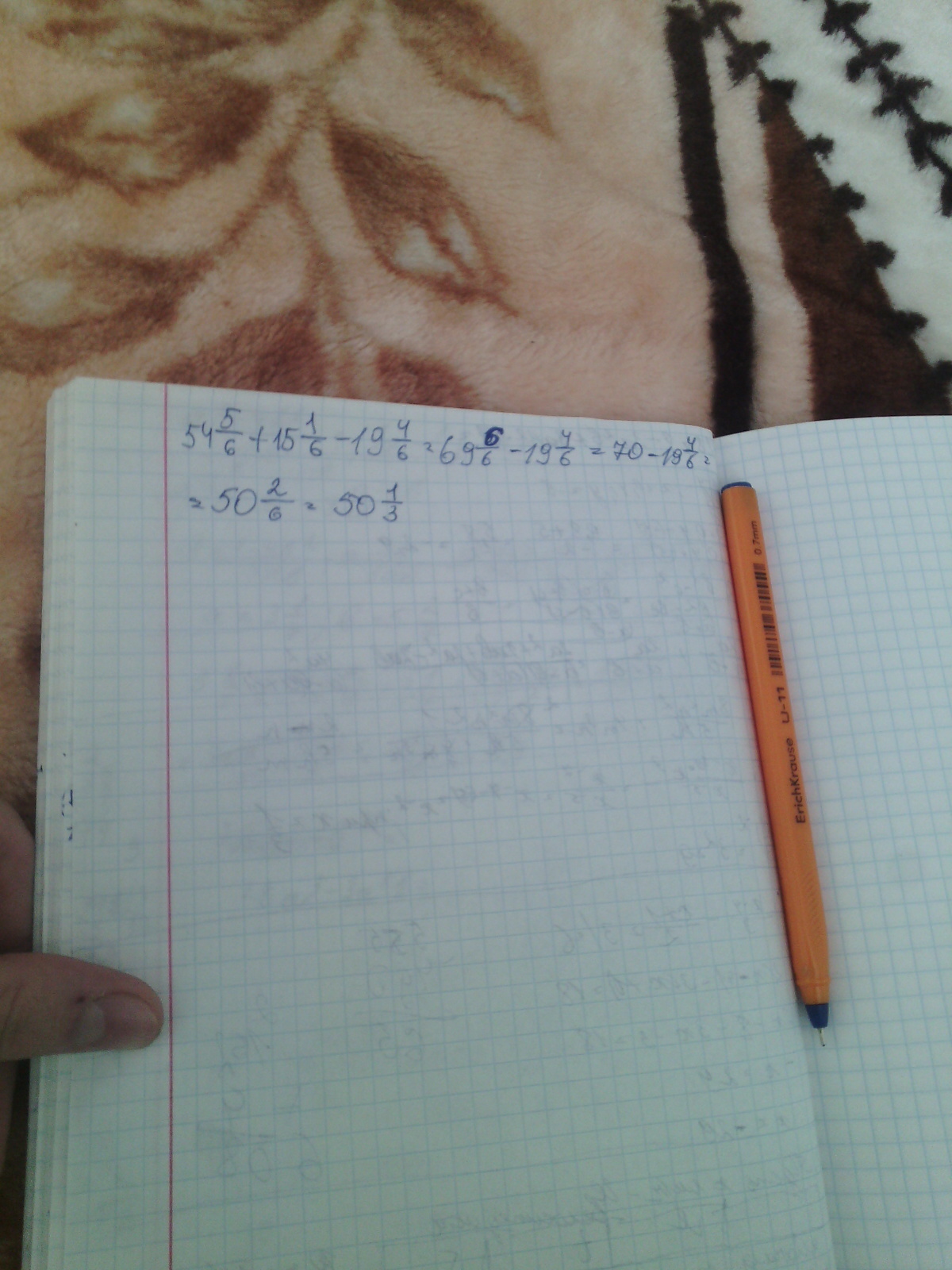 В амбаре было 54 целые 5 шестые тонны зерна. В амбар привезли 15 целых 1 шестую тонны и увезли 19 целых 4 шестые зерна. Сколько тонн зерна осталось в анбаре