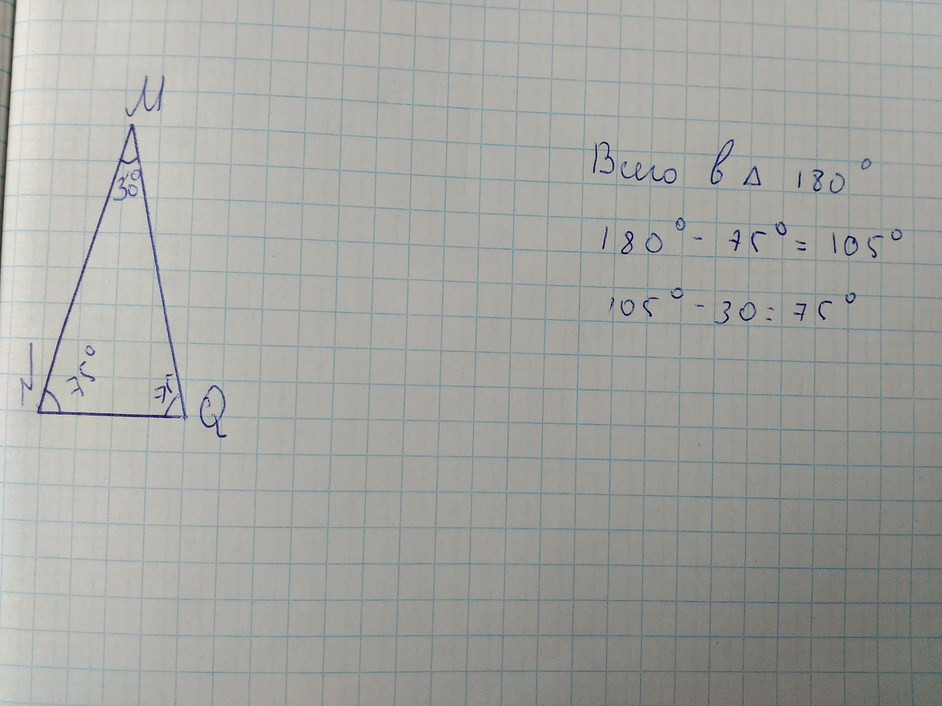 Углы треугольника в сумме должны давать 180°, значит углы посчитаны верно.