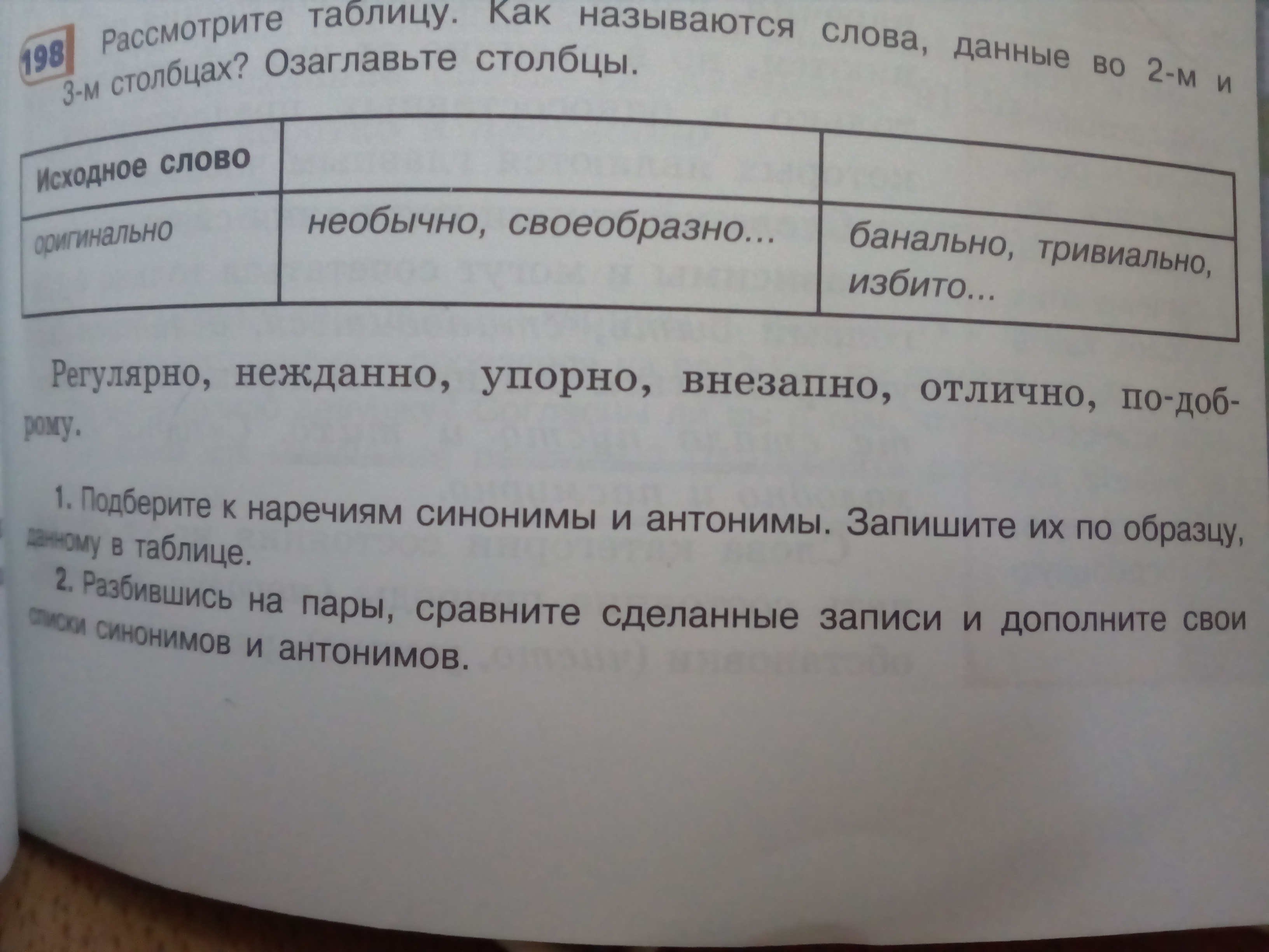Подберите к наречиям синонимы и антонимы . Запишите их по образцу, данному в таблице.