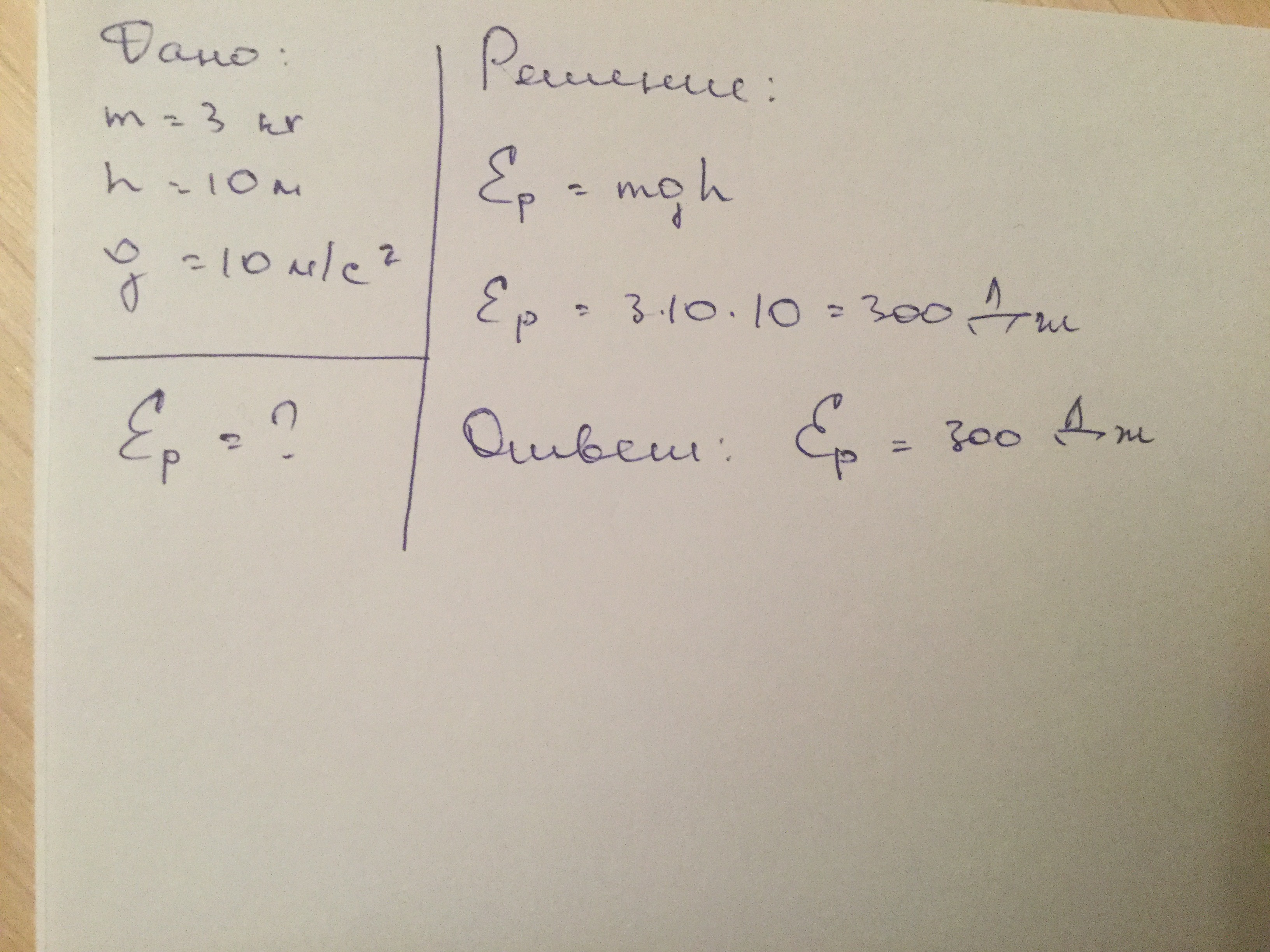 Еп=mgh=3*10*10=300 Дж=0,3 кДж