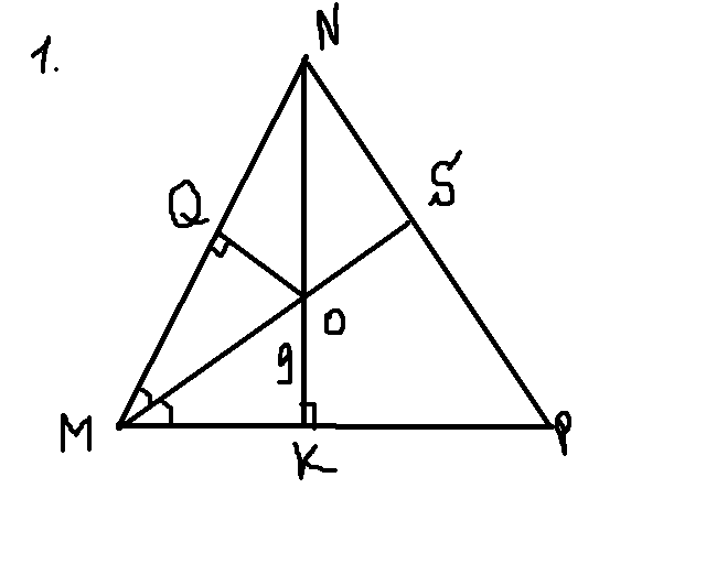 В остроугольном треугольнике MNP биссектриса угла M пересекает высоту NK в точке О причем ОК=9 см Найдите расстояние от точки О до прямой MN