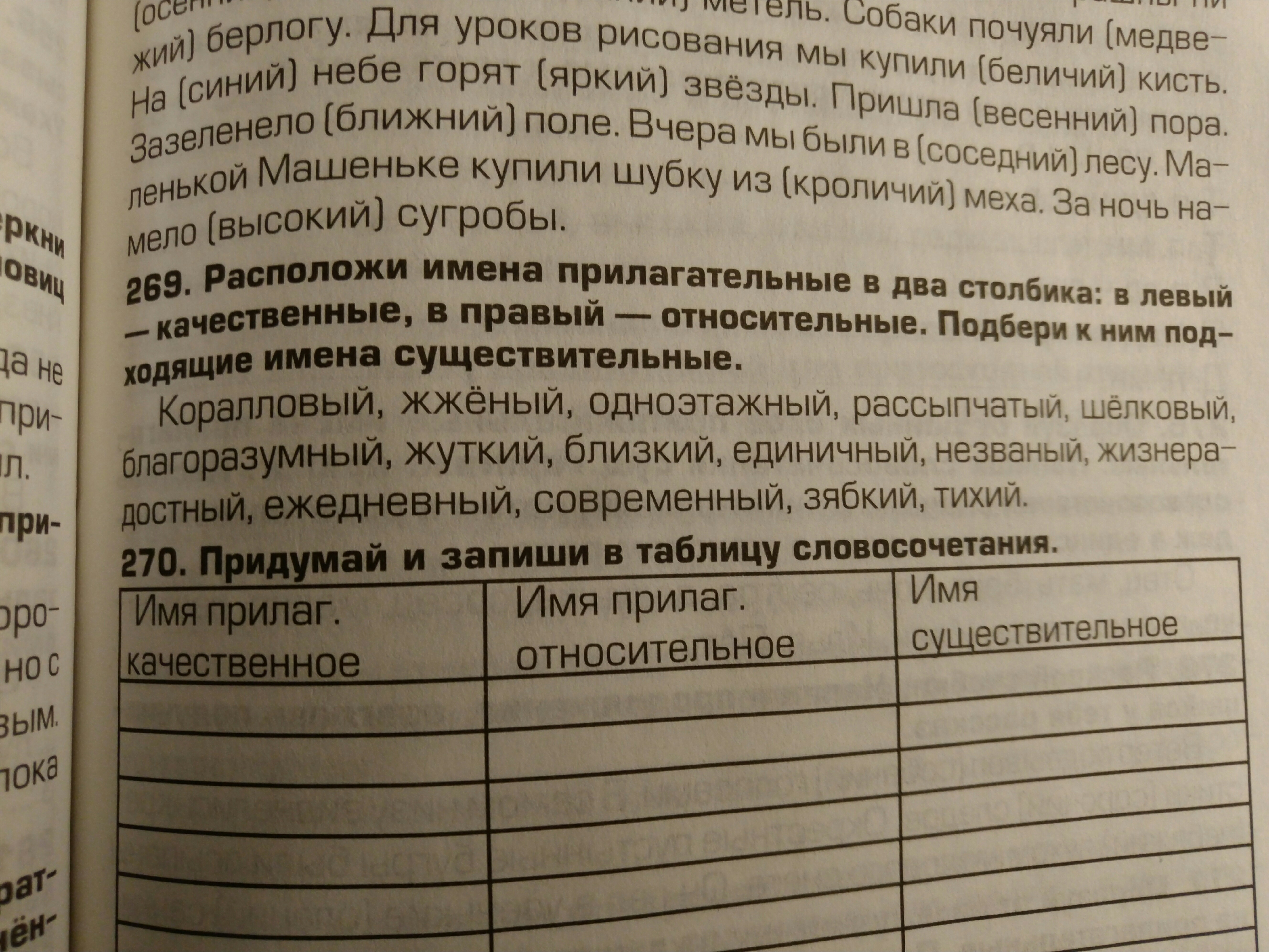 Относительные: коралловый цвет, жжёный тростник, одноэтажный дом, рассыпчатая крупа, шёлковый платок, единичный случай, ежедневное действие.