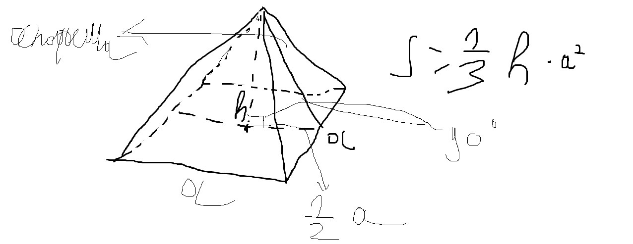 а недостающий катет это 1/2 стороны квадрата основания, воота