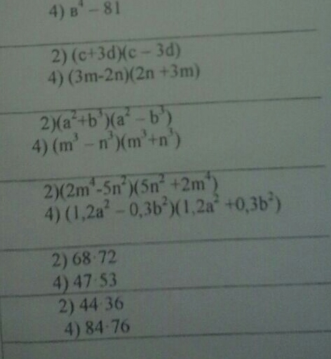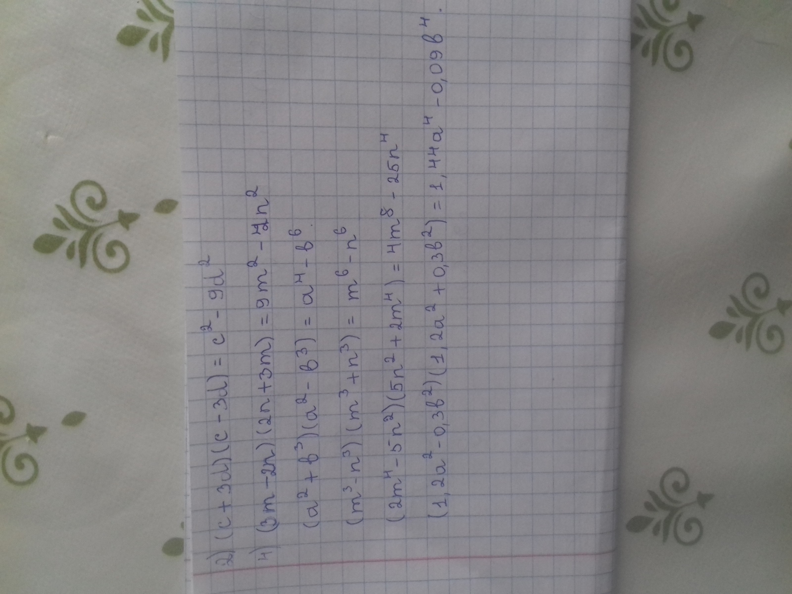 4.3) (1.2a²-0.3b²)(1.2a²+0.3b²)= =1.44a⁴-0.09b⁴