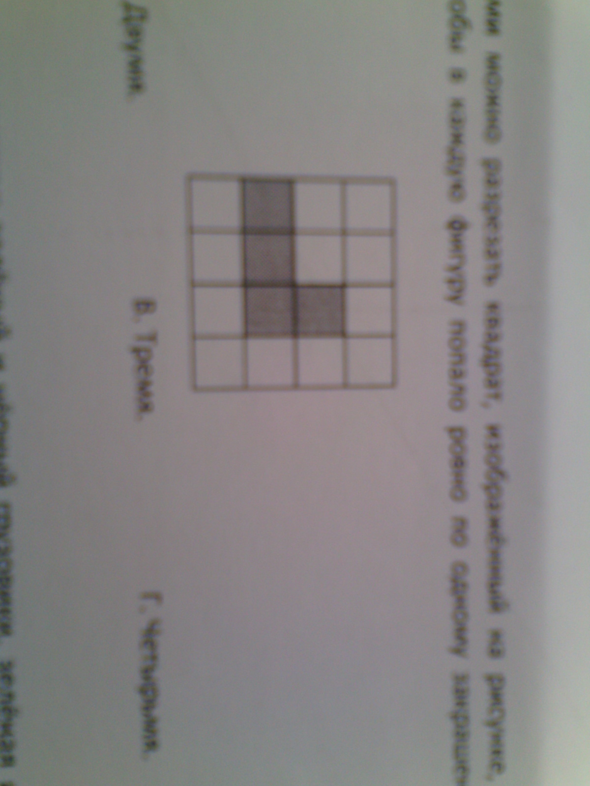 16 : 4 = 4 квадрата - должна состоять каждая фигура.