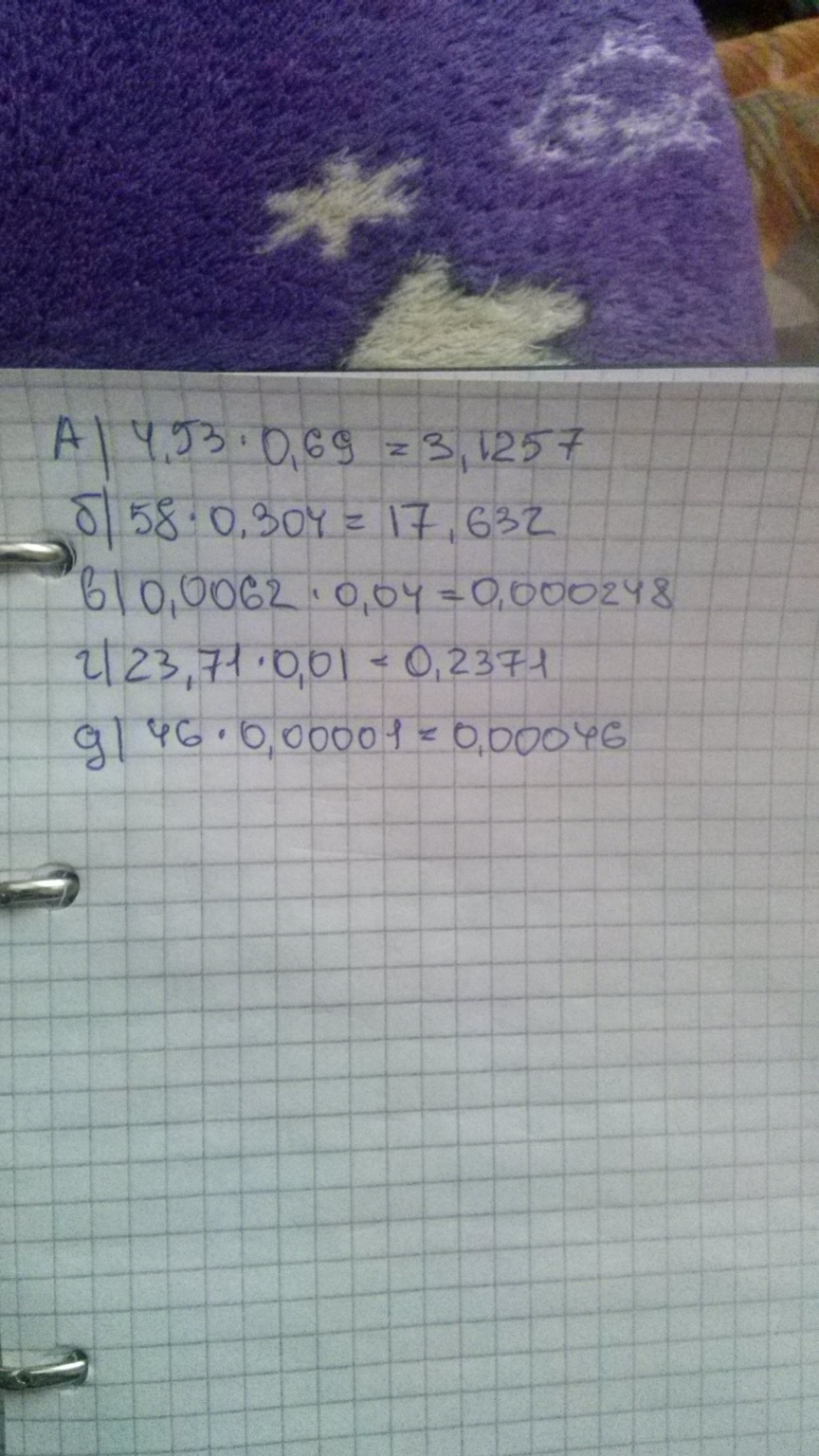 а)4,53*0,69=3,1257, б)17,632 в)0,000248 г) 0,2317 д ) 0,00046