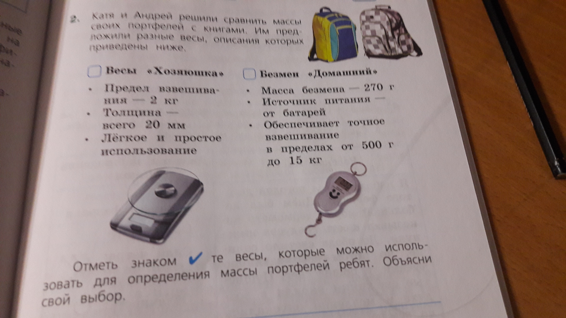 Отметь знаком те весы,которые можно использовать для определения массы портфелей ребят. Объясни свой вобор. Ребят буду благодарна 35 баллов срочно