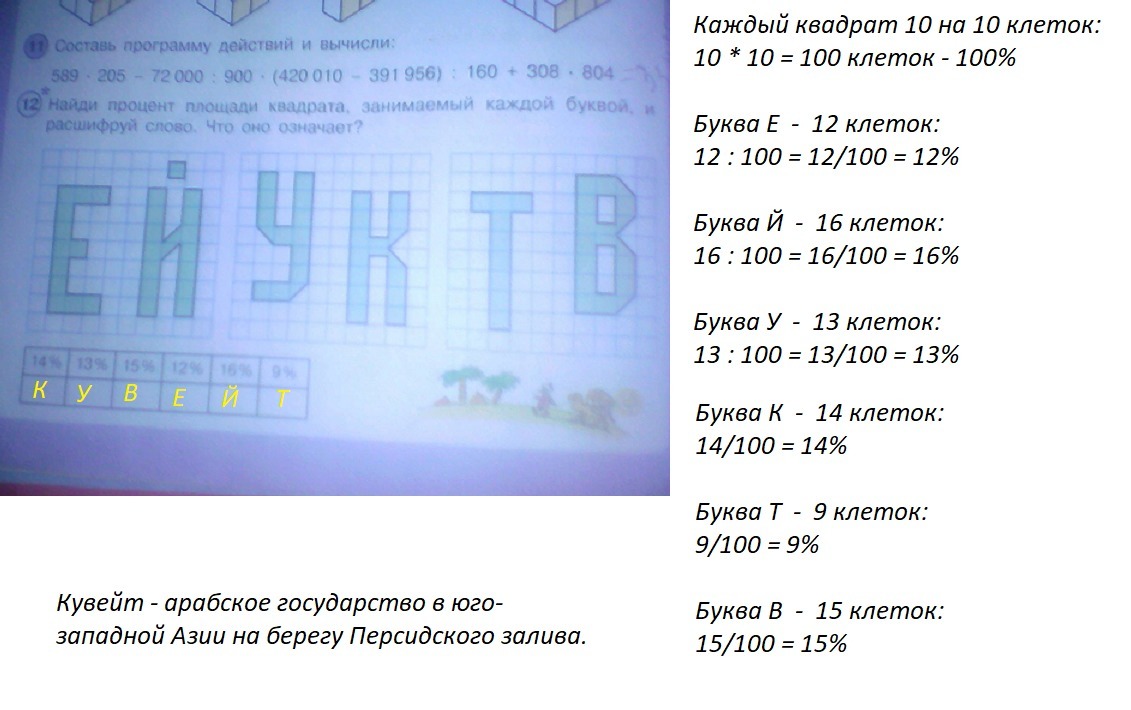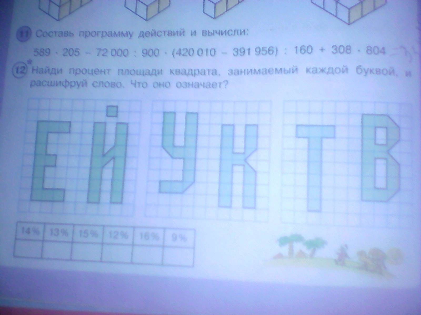 Найди процент площади квадрата занимаемый каждой буквой и расшифруй слово что оно означает
