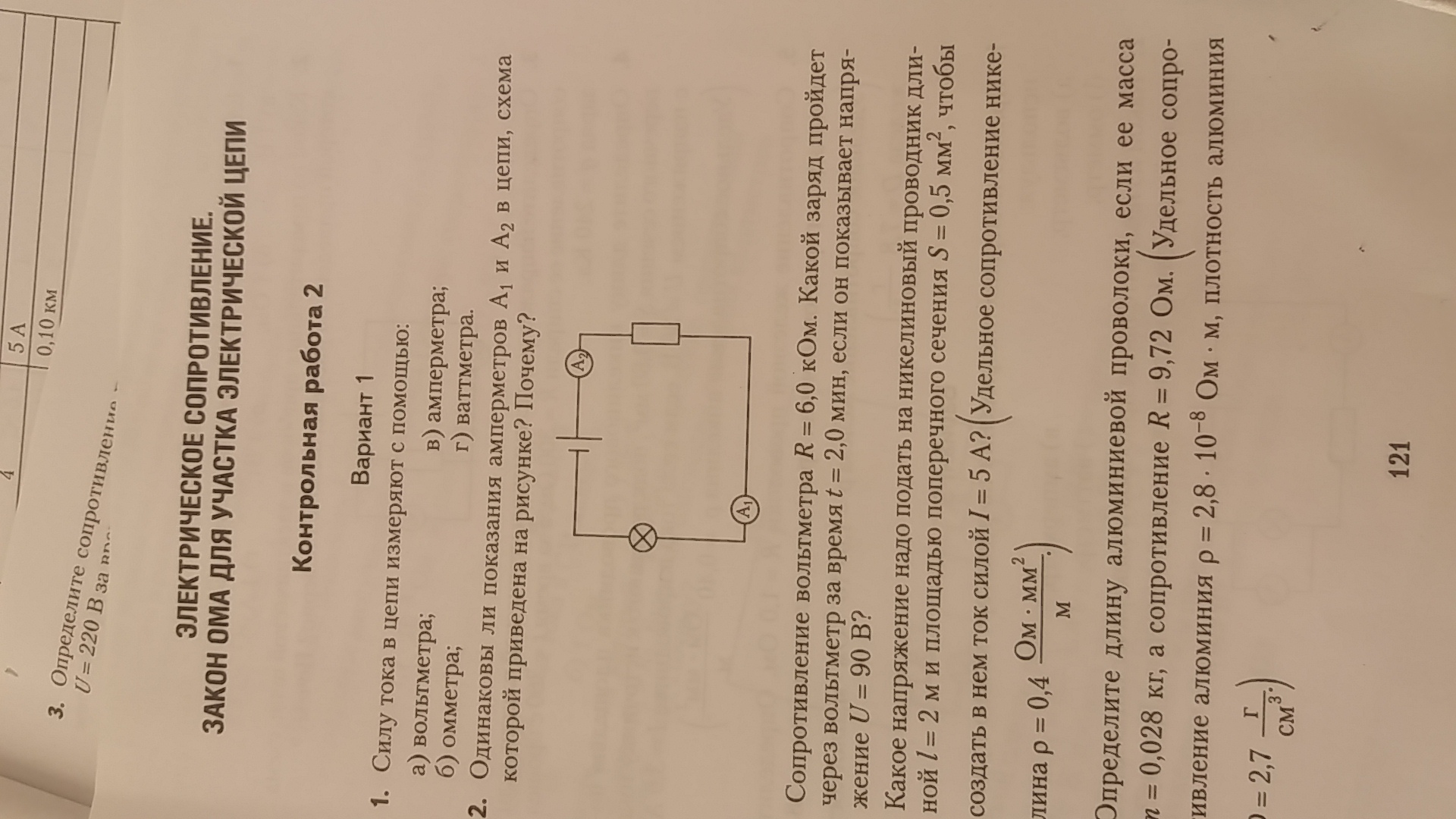 Одинаковы ли показания амперметров А1 и А2 в цепи, схема которой приведена на рисунке? Почему?