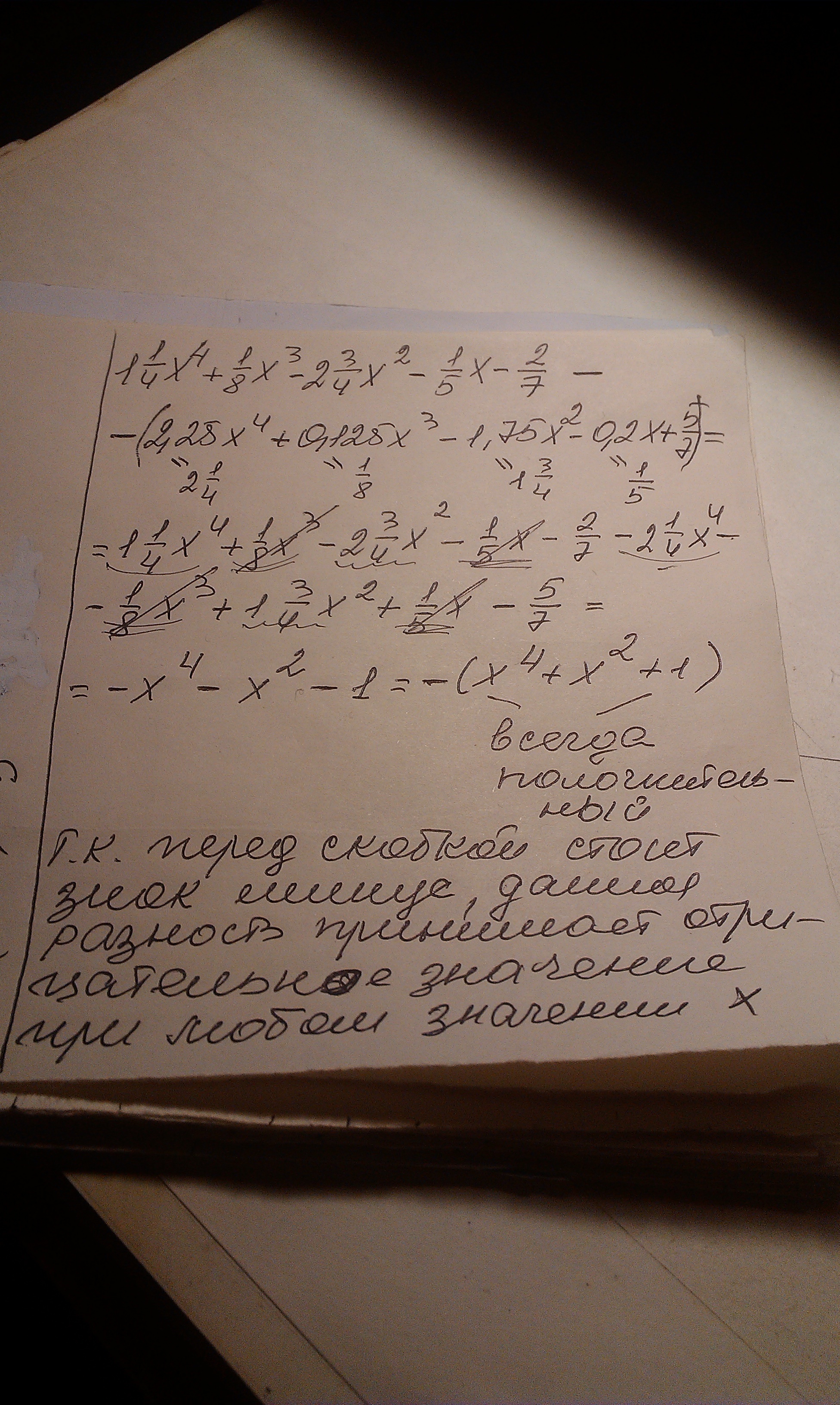 1 1/4x^4 +1/8 x^3 -2 3/4 x^2 - 1/5 x - 2/7 = 1.25x^4 + 0.125 x^3 - 2.75 x^2 - 0.2 x -2/7