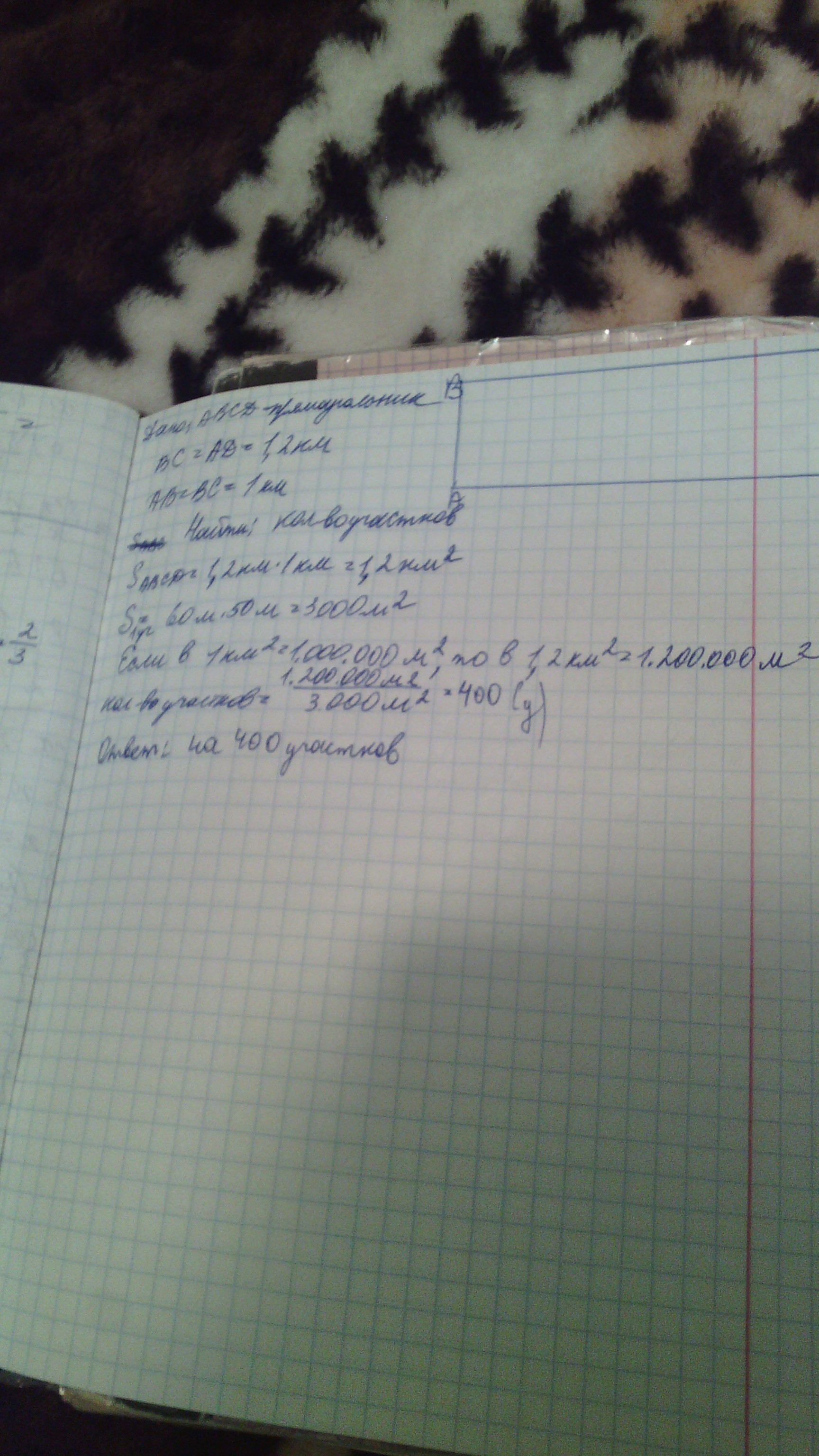 земли кооператива представляют собой прямоугольник длиной 1.2 км и шириной 1 км. Его разделили на участки длиной 60 м и шириной 50 м. Сколько таких участков получилось?