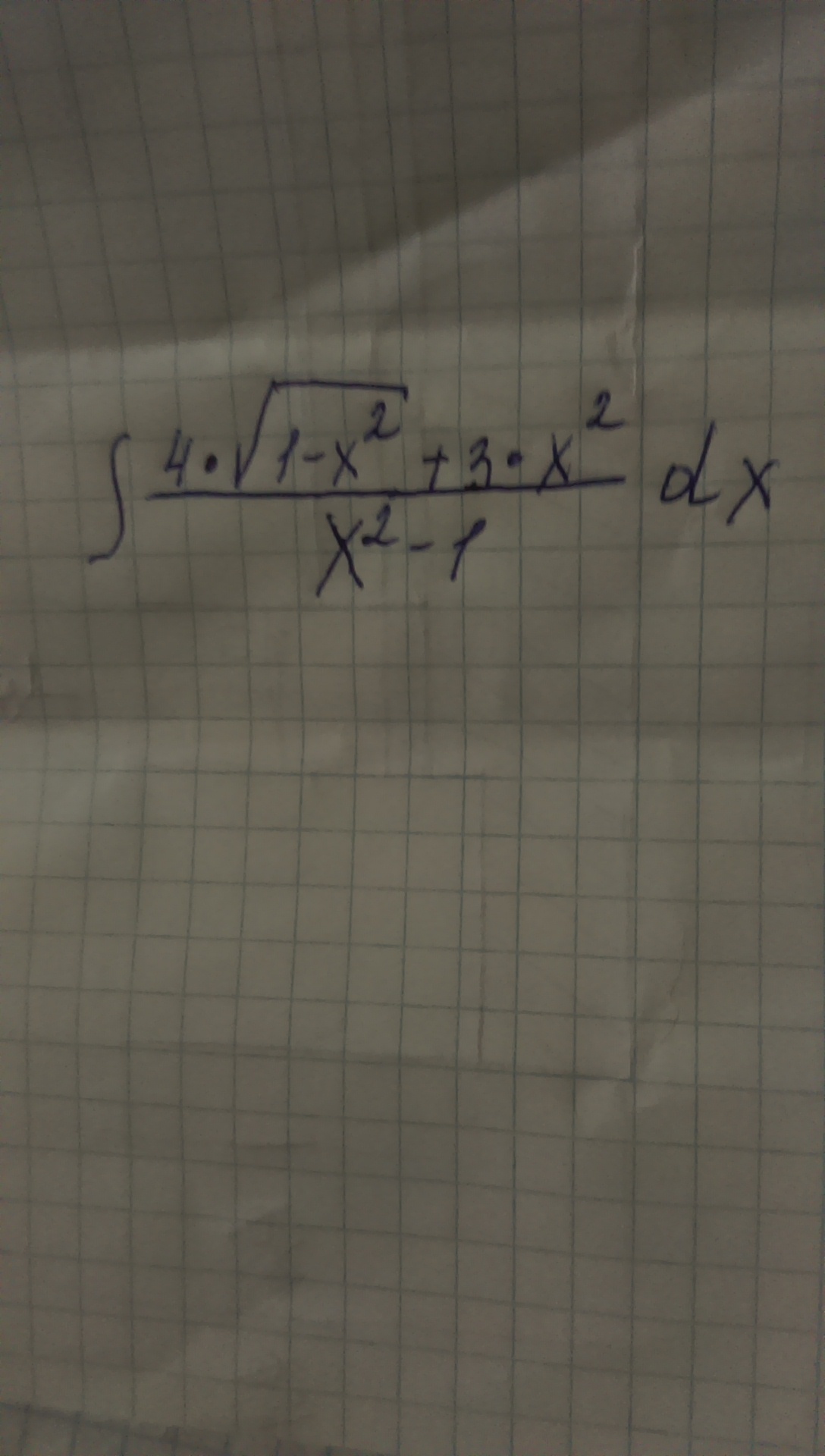 =4∫√(1-x²)/(x²-1) dx +∫(3x²-3+3)/(x²-1) dx = -4∫1/√(1-x²) dx + 3∫(x²-1)/(x²-1) dx +