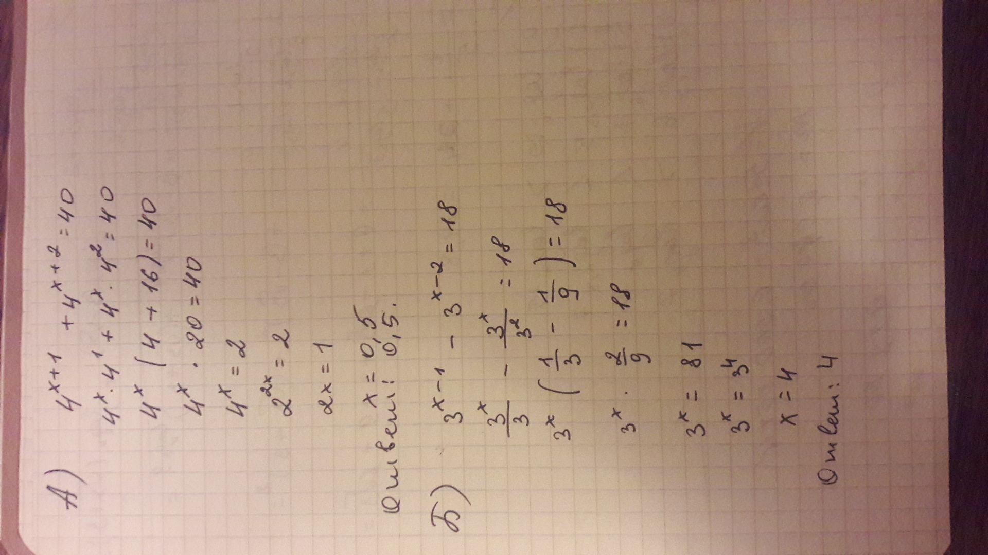 4^(х+1)(1+4)=40; 4^(х+1)=40:5;(2^2)^(х+1)=2^3;2х+2=3;2х=1;х=0,5