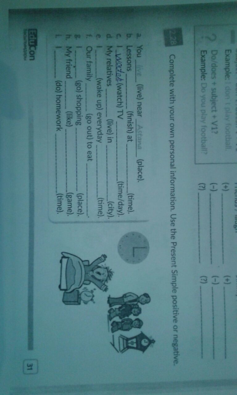 I / I do my homework at 4 pm.
