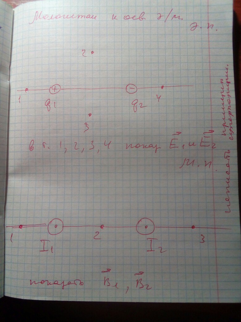 Вектор Е2 (красный) К ОТРИЦАТЕЛЬНОМУ заряду