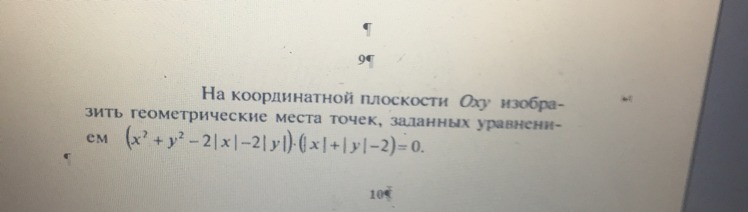 уравнение распадается на 2 независимые части x²+y²-2|x|-2|y|=0 и |x|+|y|-2=0