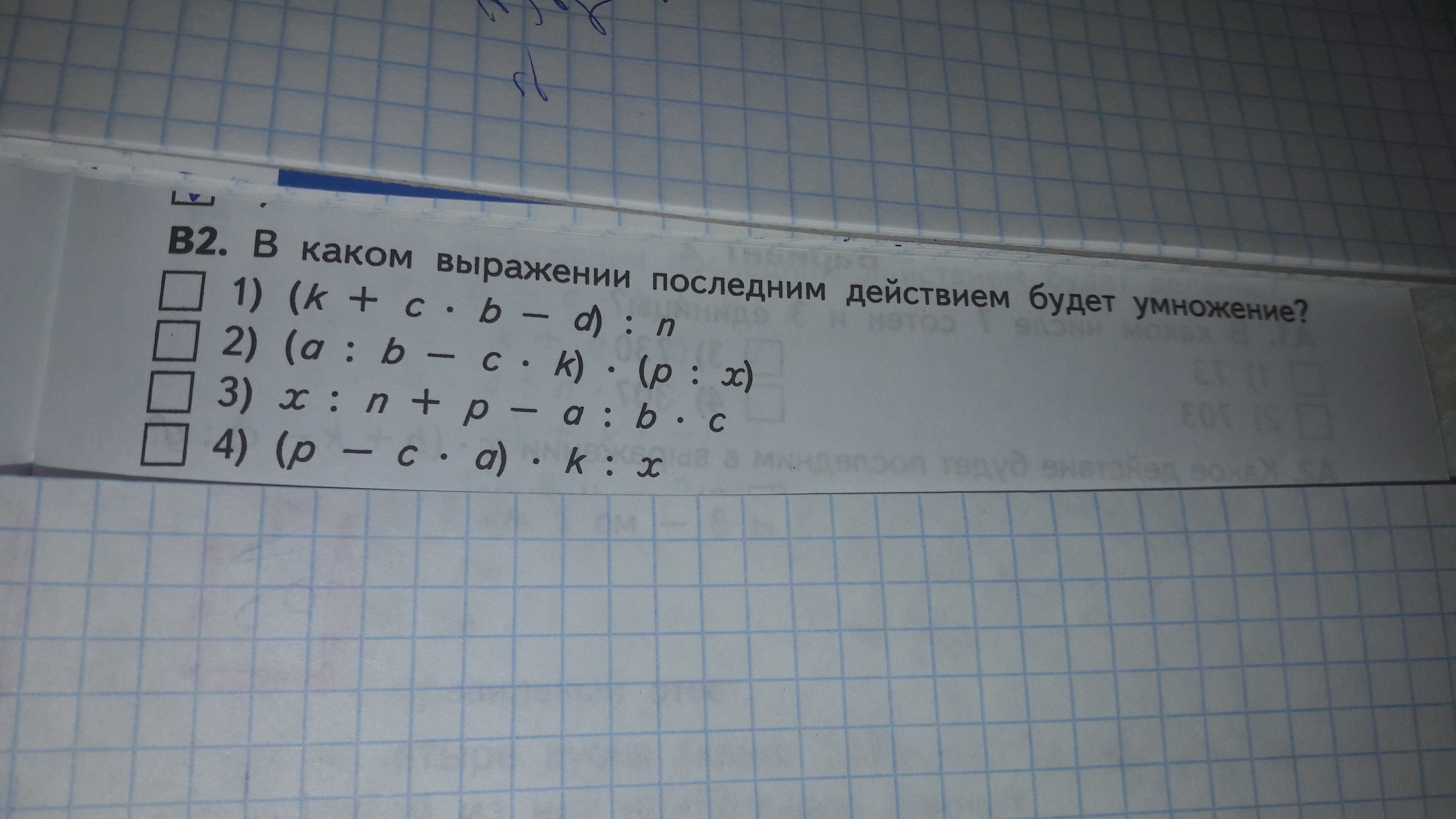 Во втором, тк умножение изолировано скобками