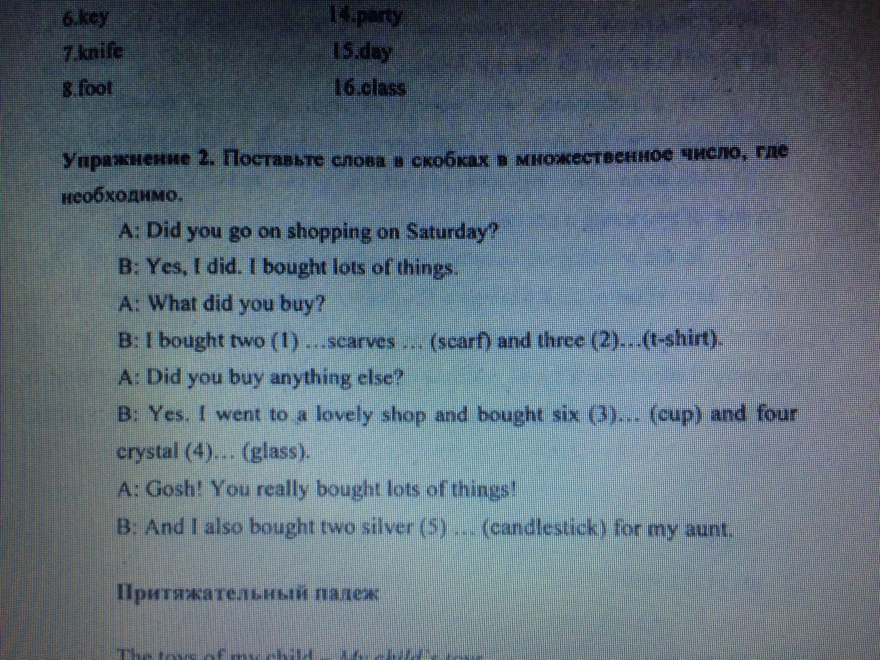 Все существительные исчисляемые, поэтому просто добавляем окончание -S или ES