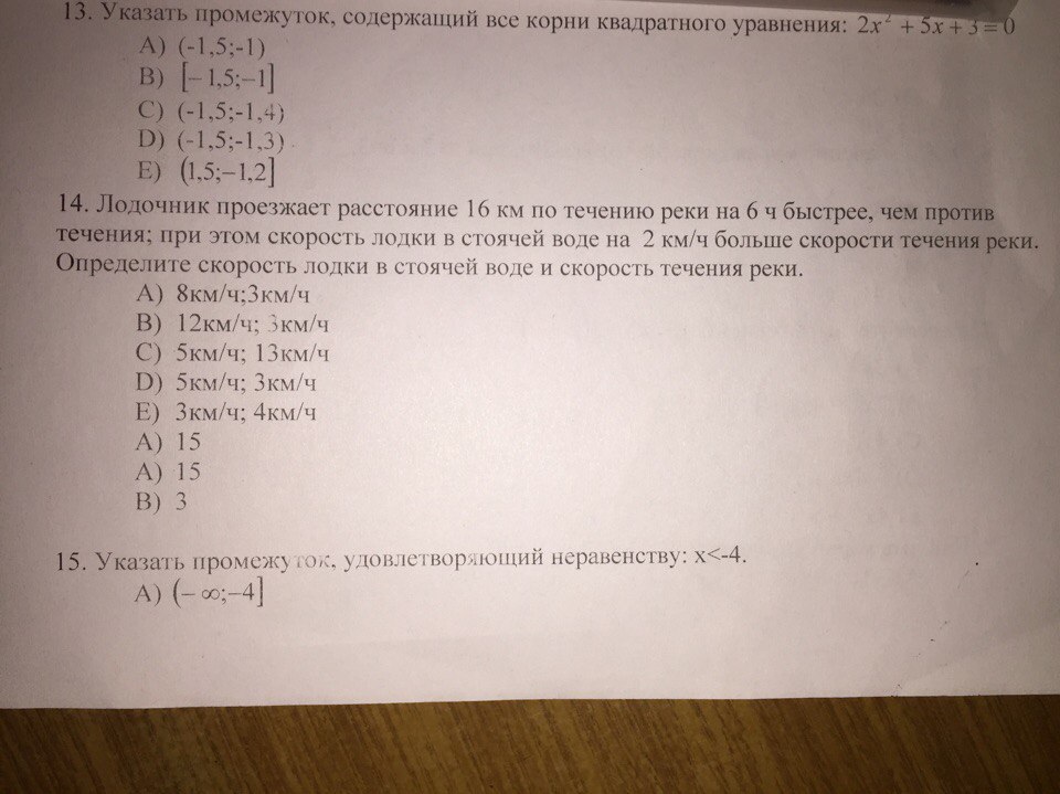 №14. Пусть х км/ч - скорость течения реки, тогда (х + 2) км/ч - скорость лодки в стоячей воде.