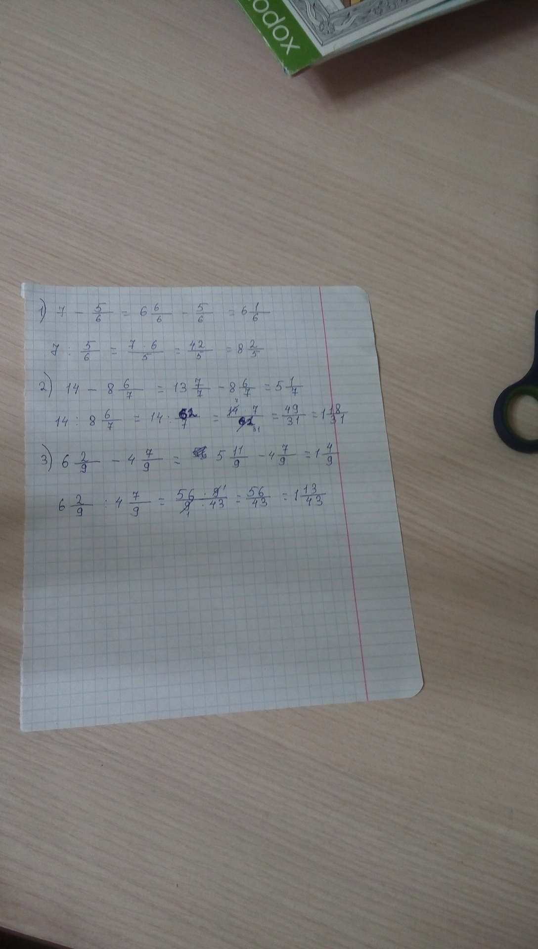А)7 -5/6=6 6/6-5/6=6 1/6