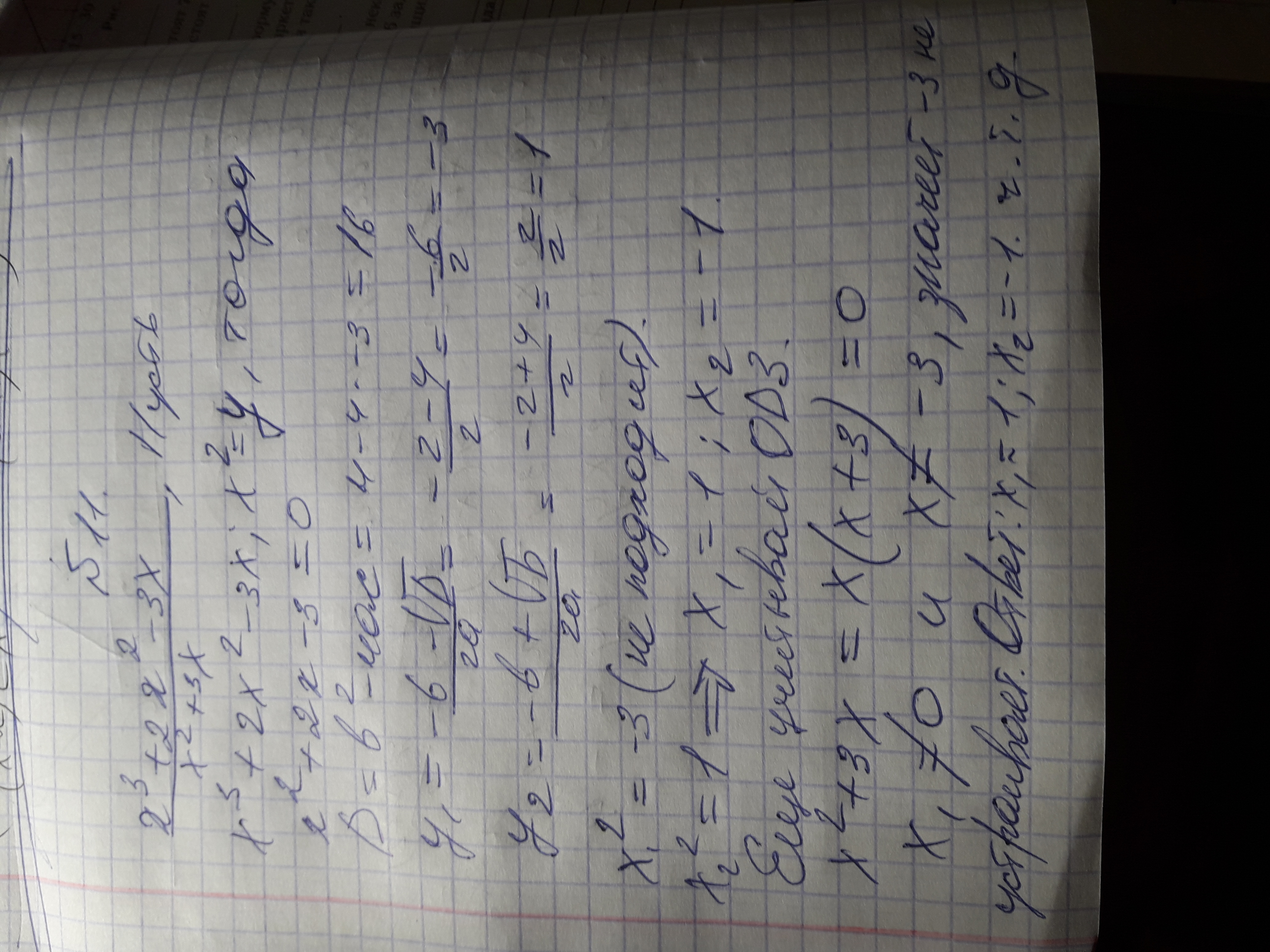 Думаю так. Надеюсь правильно. И там надо будет писать не x^2+2x-3=0, а y^2+2y-3=0. Вот и все.