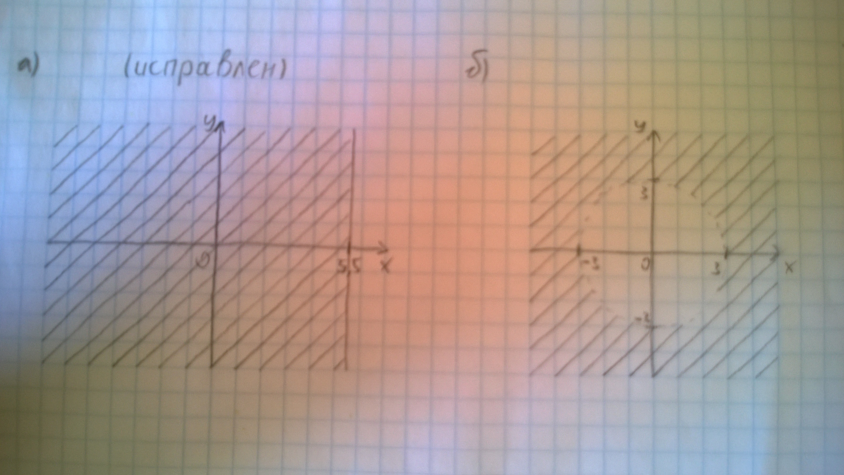 б)если немного упростить, то это уравнение окружности, и то, что нам нужно лежит за пределами этой окружности.