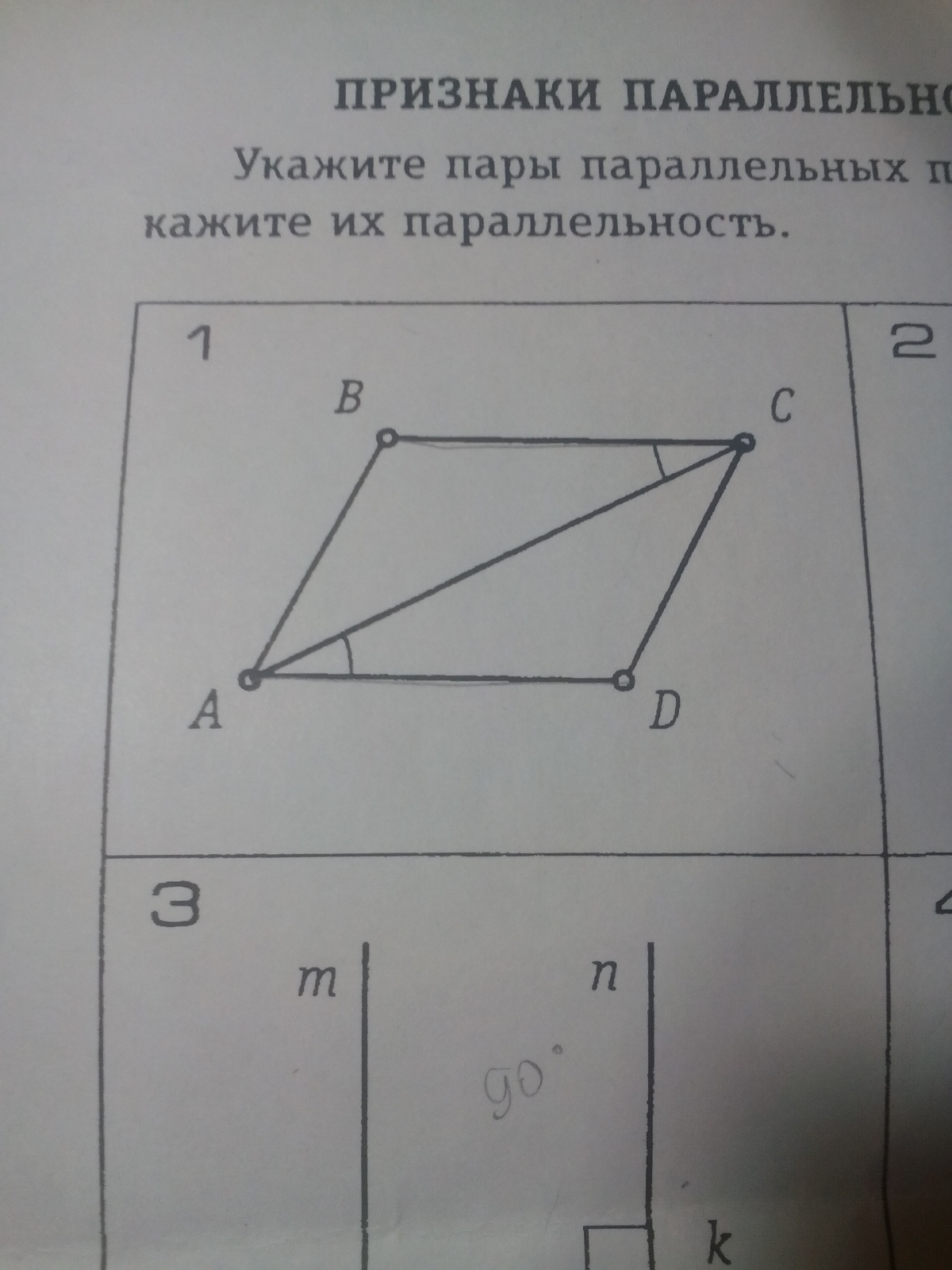Предположим,что прямые параллельны,а АС секущая так как угол АСВ равен углу САД,так как эти углы равны прямые параллельны по признаку