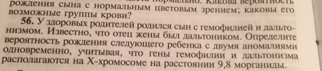 1.Если отец жены был дальтоником, то он передал ей Х хромосому с рецессивным геном по дальтонизму.