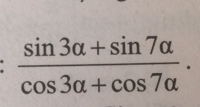 sin3α+sin7α/(cos3α+cos7α)=2sin5αcos2α/(2cos5αcos2α)=tg5α