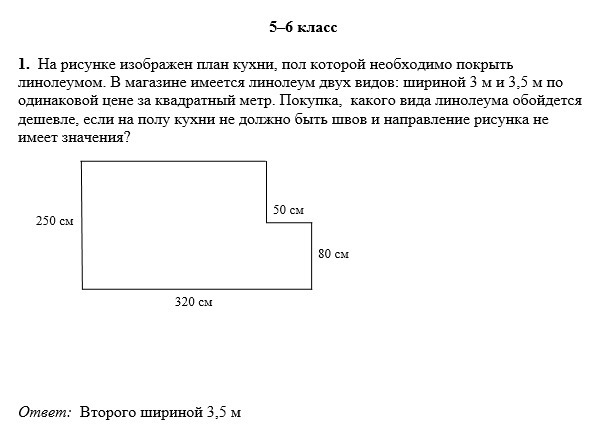 Площадь кухни 77500 сантиметров квадратных нам нужно выбрать линолеум но но мы не знаем какой выгоднее Три метра или три с половиной метра рисунок может не совпадать но на кухне не должно быть швов