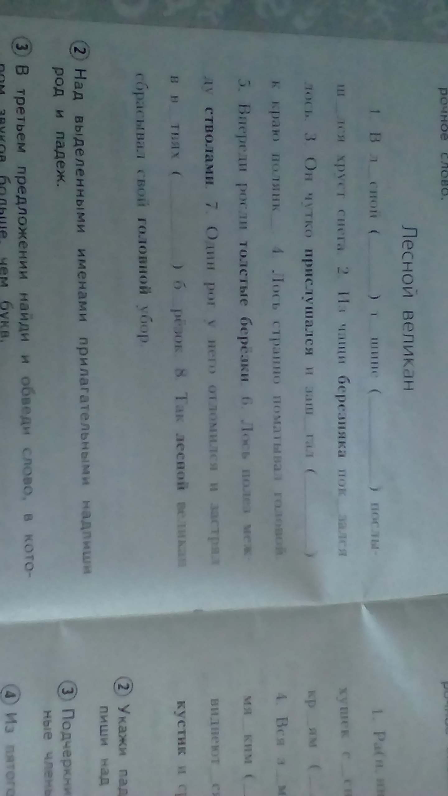 Лесной( лес),тишине ( тихо), послышался( слыхать), показалось( кажется), зашагал( шаг), полянки,ветвях( ветви),Берёзок.