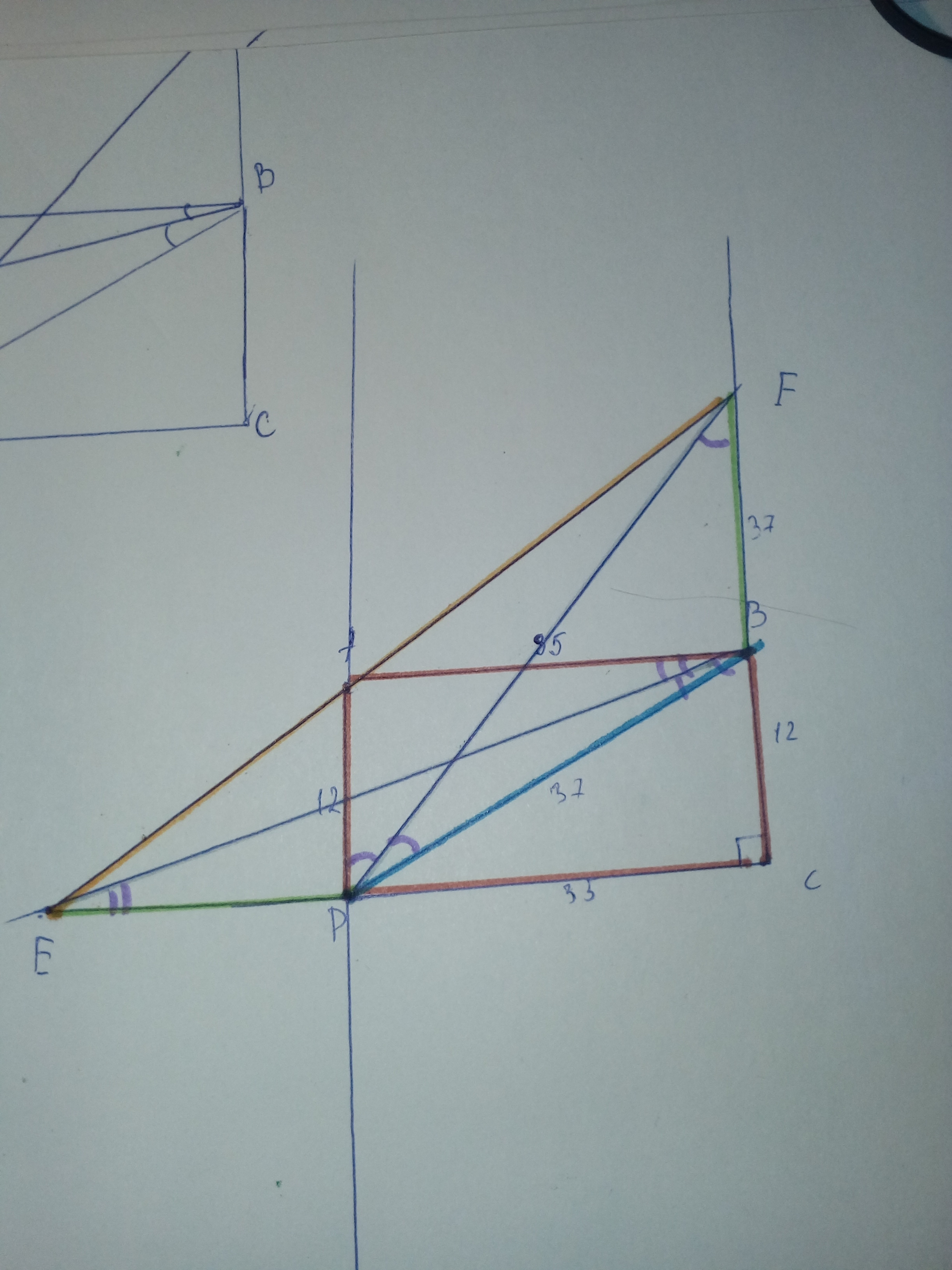 BD = √BC² + AB² = √35² + 12² = √1225 + 144 = √1369 = 37 => FB = 37.