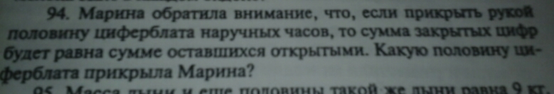 Марина закрыла 1/2 часть. т.к. 10+11+12+1+2+3=39 и 4+5+6+7+8+9=39