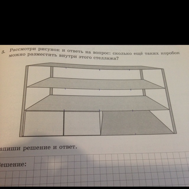 судя по рисунку -- 1 коробка в длину до середины стелажа, значит в одном ряду будет по две коробки.