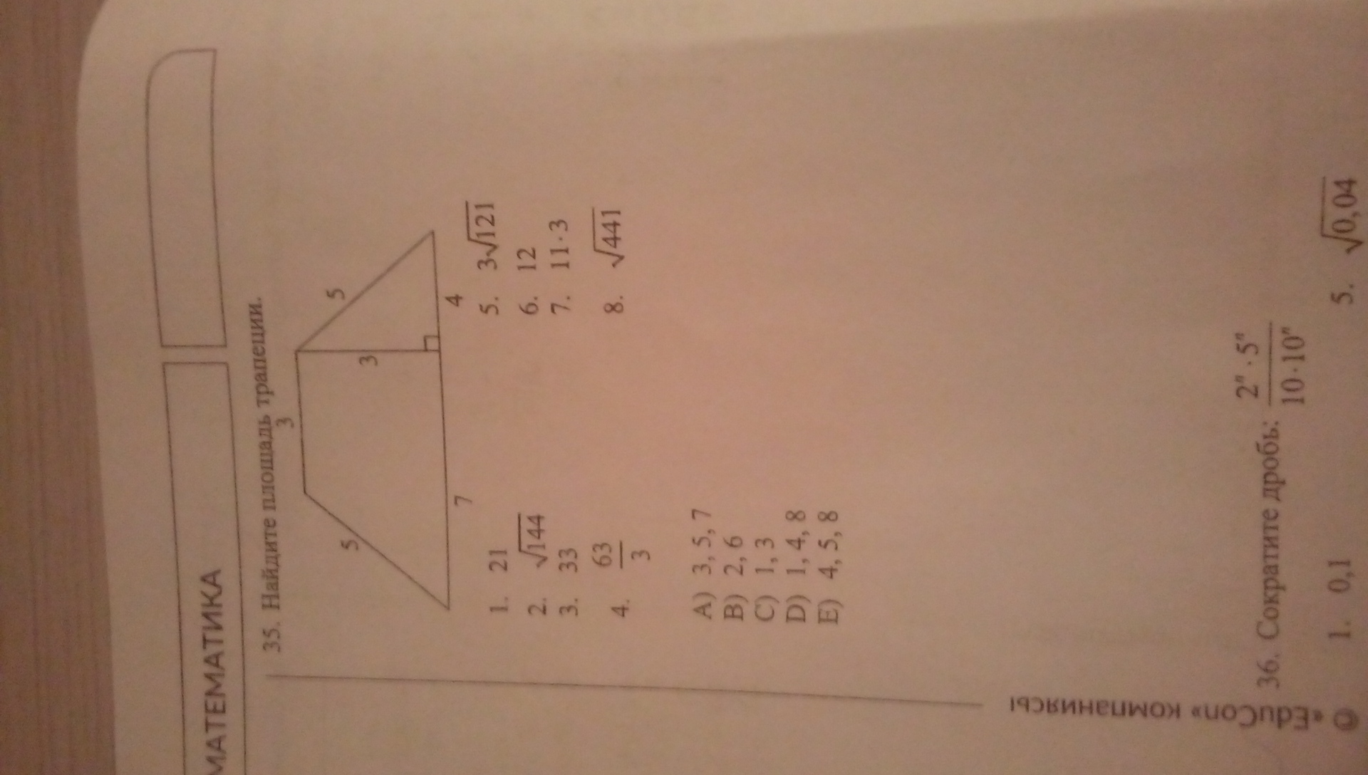 Сначала находим площадь 2-х треугольников,а потом площадь 1 квадрата.Складываем числа которые получились и получим число 21