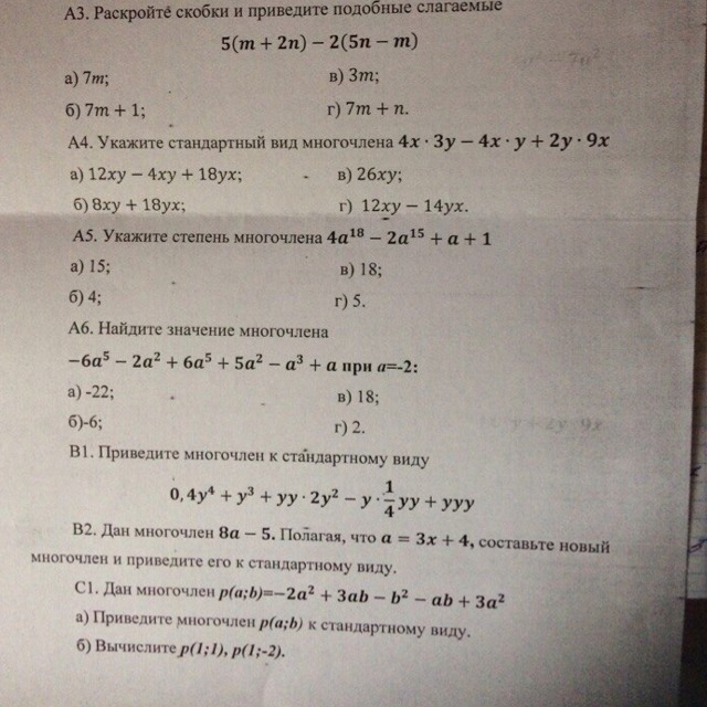 A3 5(m+2n)-2(5n-m)=5m+10n-10n+2m=7m