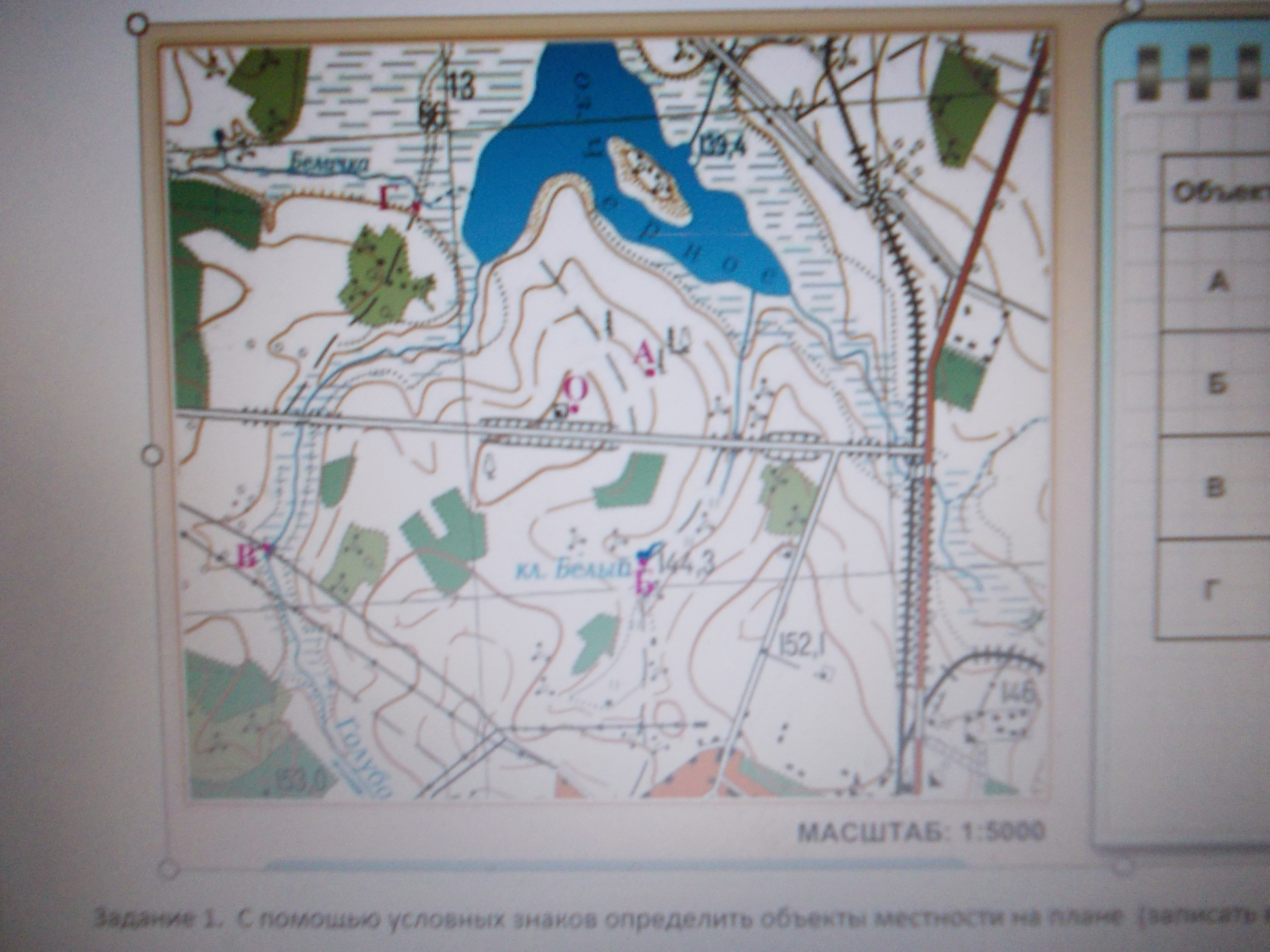 Задание 1. С помощью условных знаков определить объекты местности на плане