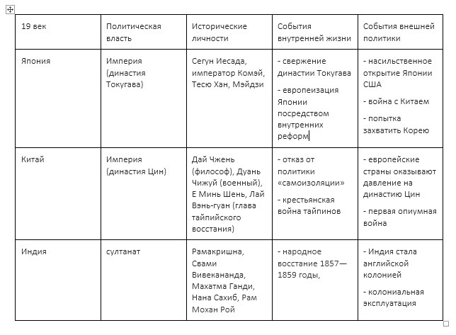 Таблица "Страны Востока в XIX веке" в приложении ниже