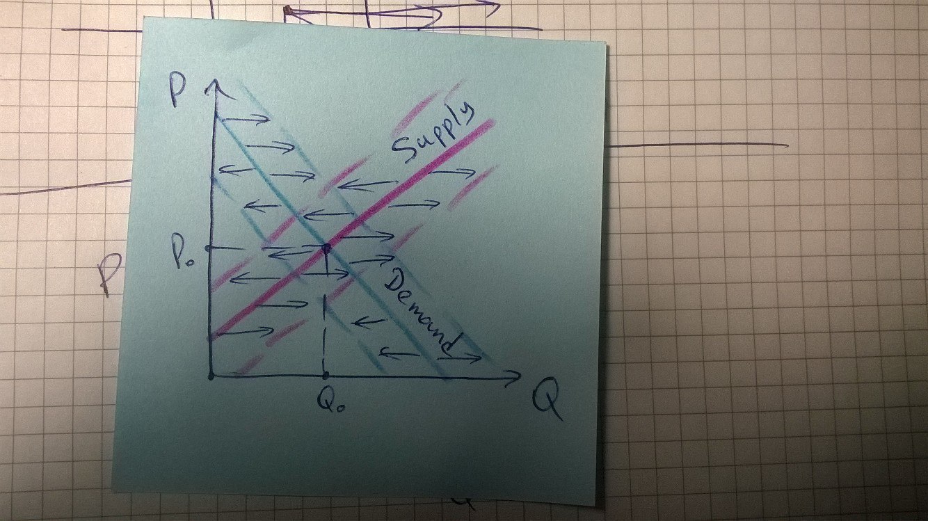 В общем-то, не обязательно равновесная цена и равновесное количество растут или падают оба вместе. Один из компонентов может оставаться на прежнем уровне, но никак не двигаться в противоположном направлении.